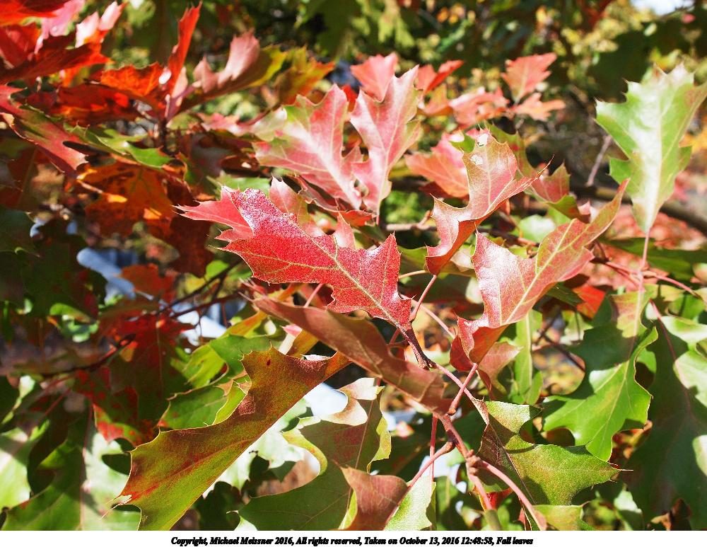 Picture #97: Fall leaves #3 1000x773, 173,124 bytes (170K), (html file) Copyright, Michael Meissner 2016, All rights reserved Olympus E-5 camera with Olympus 14-54mm f/2.8-3.5 lens f/5.6, ISO 200, 1/250 sec, 22.0mm, auto mode, vivid color, HQ, matrix metering, bias 0.3, IS1 (All Direction Shake IS), noise filter low 35mm equivalent focal length 44.0mm Programs used: crop, raw therapee Taken by Michael Meissner on October 13, 2016 12:48:58 Last modified on October 15, 2016 at 00:42 |