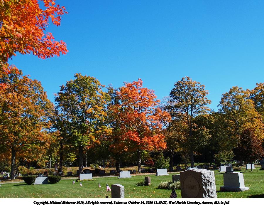 Picture #91: West Parish Cemetery, Anover, MA in fall #2 900x698, 218,942 bytes (214K), (html file) Copyright, Michael Meissner 2016, All rights reserved Olympus Stylus-1 camera f/3.5, ISO 100, 1/500 sec, 16.1mm, auto mode, vivid color, SHQ, matrix metering, IS Auto, noise reduction auto, noise filter low 35mm equivalent focal length 76.0mm Programs used: crop, raw therapee Taken by Michael Meissner on October 14, 2016 11:52:23 Last modified on October 26, 2016 at 00:14 |