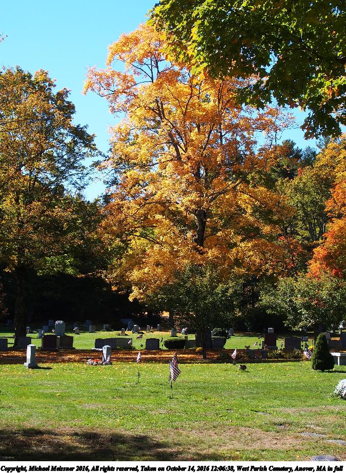 Picture #86: West Parish Cemetery, Anover, MA in fall #7 900x698, 231,249 bytes (226K), (html file) Copyright, Michael Meissner 2016, All rights reserved Olympus Stylus-1 camera f/3.5, ISO 100, 1/1000 sec, 16.1mm, auto mode, vivid color, SHQ, matrix metering, IS Auto, noise reduction auto, noise filter low 35mm equivalent focal length 76.0mm Programs used: crop, raw therapee Taken by Michael Meissner on October 14, 2016 11:58:22 Last modified on October 26, 2016 at 00:21 |