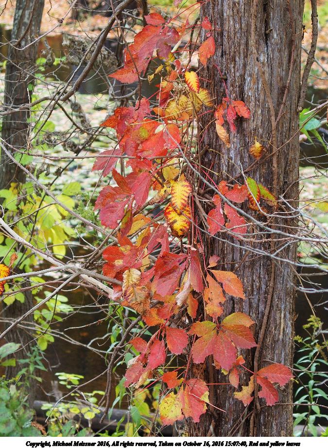Picture #62: Red and yellow leaves 675x923, 223,134 bytes (218K), (html file) Copyright, Michael Meissner 2016, All rights reserved Olympus Stylus-1 camera f/2.8, ISO 160, 1/200 sec, 21.2mm, auto mode, vivid color, SHQ, matrix metering, IS Auto, noise reduction auto, noise filter low 35mm equivalent focal length 100.0mm Programs used: crop, raw therapee, rotate left Taken by Michael Meissner on October 16, 2016 15:07:40 Last modified on October 26, 2016 at 00:40 |