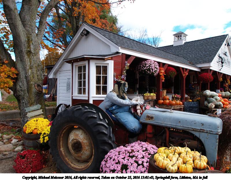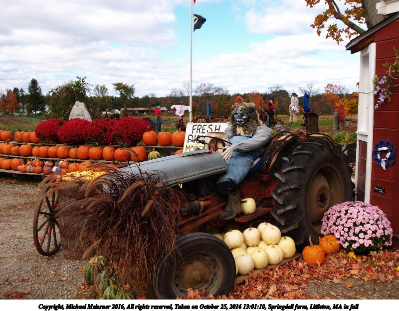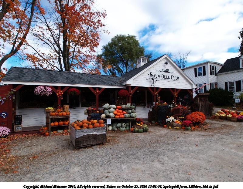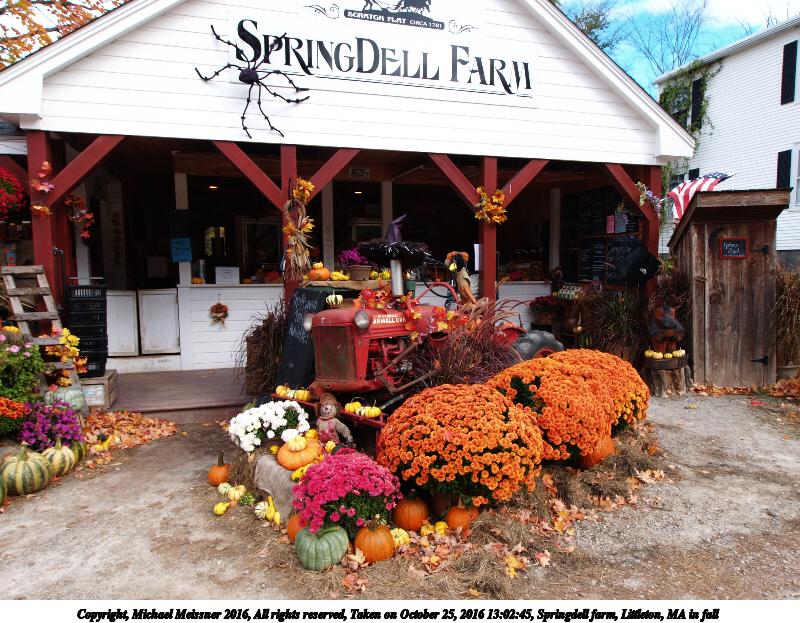 Picture #51: Springdell farm, Littleton, MA in fall #4 800x623, 138,416 bytes (136K), (html file) Copyright, Michael Meissner 2016, All rights reserved Olympus E-1 camera with Olympus 9-18mm f/4.0-5.6 lens f/8.0, ISO 100, 1/160 sec, 9.0mm, auto mode, SHQ, matrix metering, +2 contrast, +2 sharpening, green enhance saturation, continous focus 35mm equivalent focal length 18.0mm Programs used: crop Taken by Michael Meissner on October 25, 2016 13:02:34 Last modified on October 26, 2016 at 00:44 |