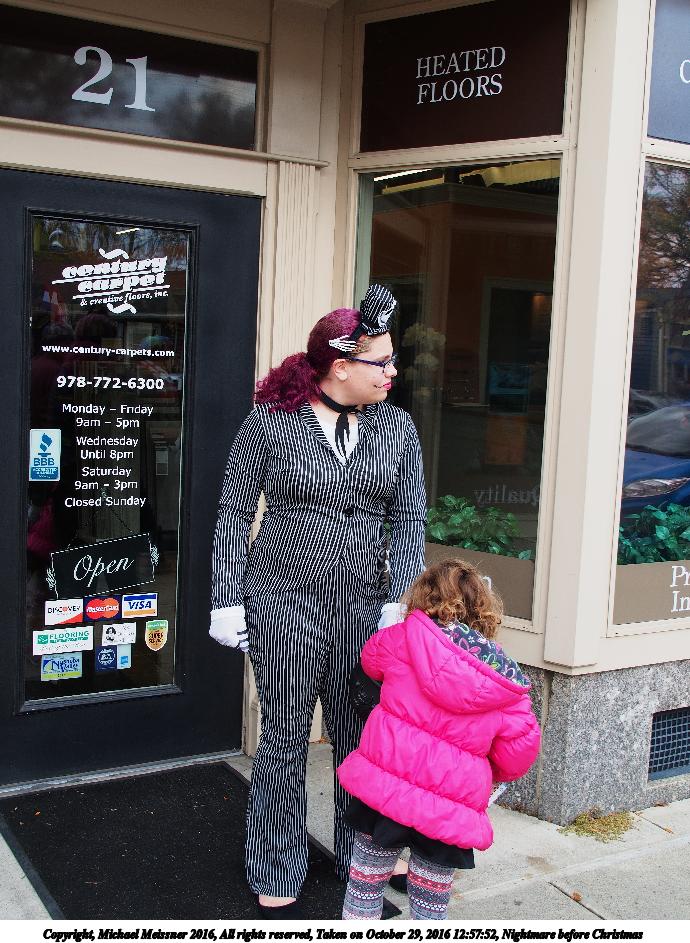 Picture #25: Nightmare before Christmas 690x943, 157,930 bytes (155K), (html file) Copyright, Michael Meissner 2016, All rights reserved Olympus E-M5-I camera with Olympus-m43 14-150mm-II f/4.0-5.6 lens f/5.6, ISO 200, 1/125 sec, 20.0mm, auto mode, vivid color, matrix metering, IS1 (All Direction Shake IS), noise filter low 35mm equivalent focal length 40.0mm Programs used: crop, raw therapee, rotate left Taken by Michael Meissner on October 29, 2016 12:57:52 Last modified on October 29, 2016 at 18:34 |