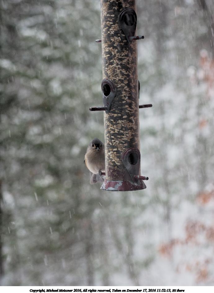 Picture #20: Hi there 690x942, 84,893 bytes (83K), (html file) Copyright, Michael Meissner 2016, All rights reserved Olympus E-M1-I camera with Olympus 50-200mm lens f/3.2, ISO 200, 1/160 sec, 50.0mm, auto mode, vivid color, SHQ, matrix metering, auto + manual focus, IS Auto, noise filter low, anti-shock 35mm equivalent focal length 100.0mm Programs used: crop, raw therapee, rotate left Taken by Michael Meissner on December 17, 2016 11:52:13 Last modified on December 17, 2016 at 13:11 |