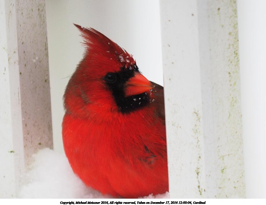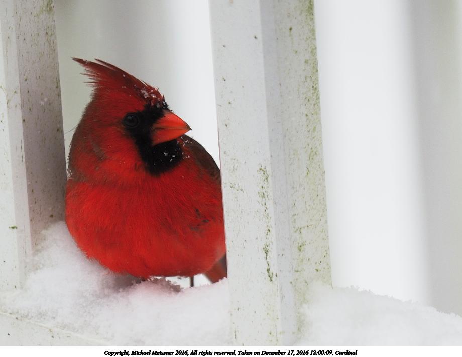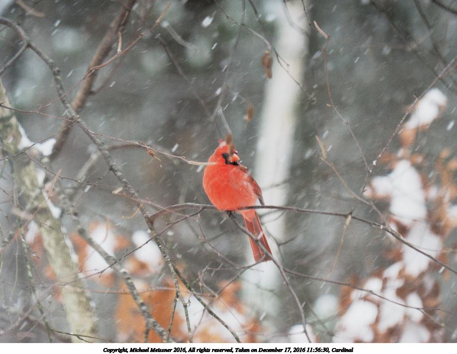 Picture #12: Cardinal #4 920x712, 68,550 bytes (67K), (html file) Copyright, Michael Meissner 2016, All rights reserved Olympus E-M1-I camera with Olympus 50-200mm lens f/3.2, ISO 200, 1/320 sec, 158.0mm, auto mode, vivid color, SHQ, matrix metering, digital zoom x2, auto + manual focus, IS Auto, noise filter low 35mm equivalent focal length 633.0mm, digital zoom x2 Programs used: crop, raw therapee Taken by Michael Meissner on December 17, 2016 12:00:09 Last modified on December 17, 2016 at 13:15 This picture is one of my favorites. |