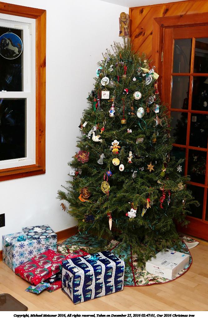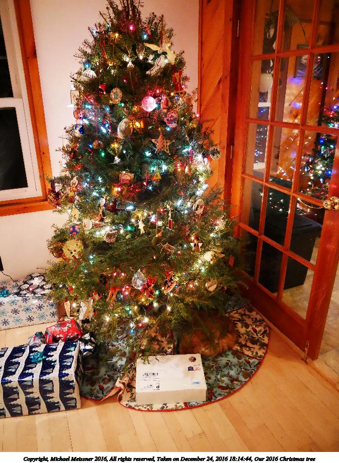 Picture #5: Our 2016 Christmas tree #2 667x1022, 191,137 bytes (187K), (html file) Copyright, Michael Meissner 2016, All rights reserved Panasonic G85 camera with Panasonic 12-60mm f/3.5-5.6 lens f/3.6, ISO 200, flash, 1/60 sec, 14.0mm, auto mode, auto wb (6100), matrix metering 35mm equivalent focal length 28.0mm Programs used: crop, gimp, raw therapee, rotate left Taken by Michael Meissner on December 25, 2016 02:47:01 Last modified on December 26, 2016 at 11:01 |