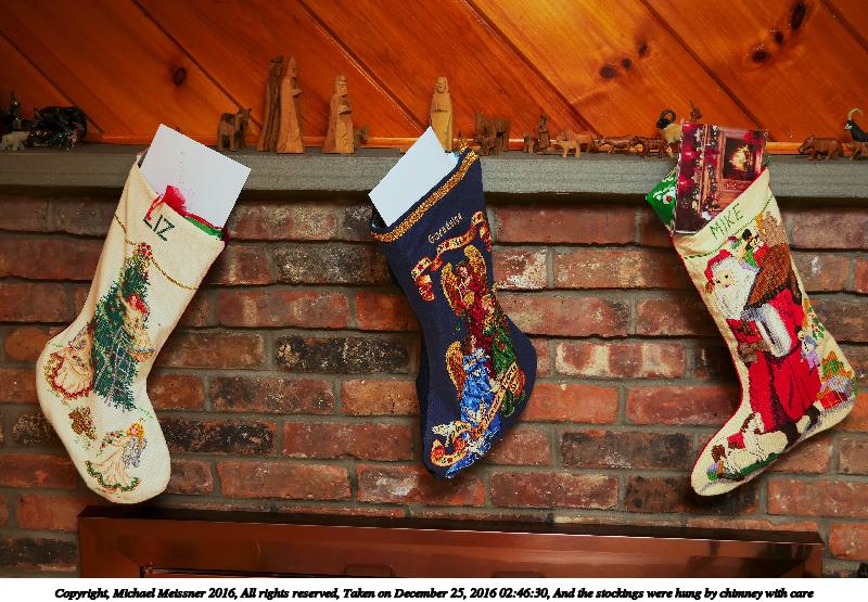 Picture #6: And the stockings were hung by chimney with care 800x555, 137,356 bytes (135K), (html file) Copyright, Michael Meissner 2016, All rights reserved Panasonic G85 camera with Panasonic 12-60mm f/3.5-5.6 lens f/4.2, ISO 200, flash, 1/60 sec, 22.0mm, auto mode, auto wb (6100), matrix metering 35mm equivalent focal length 44.0mm Programs used: crop, raw therapee Taken by Michael Meissner on December 25, 2016 02:46:30 Last modified on December 26, 2016 at 10:59 |