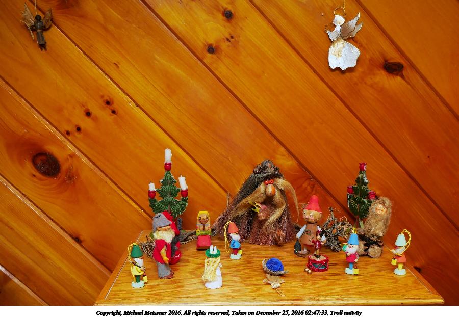Picture #4: Troll nativity 900x622, 124,825 bytes (122K), (html file) Copyright, Michael Meissner 2016, All rights reserved Panasonic G85 camera with Panasonic 12-60mm f/3.5-5.6 lens f/3.7, ISO 200, flash, 1/60 sec, 15.0mm, auto mode, auto wb (6100), matrix metering 35mm equivalent focal length 30.0mm Programs used: crop, gimp, raw therapee Taken by Michael Meissner on December 25, 2016 02:47:33 Last modified on December 26, 2016 at 11:02 |
