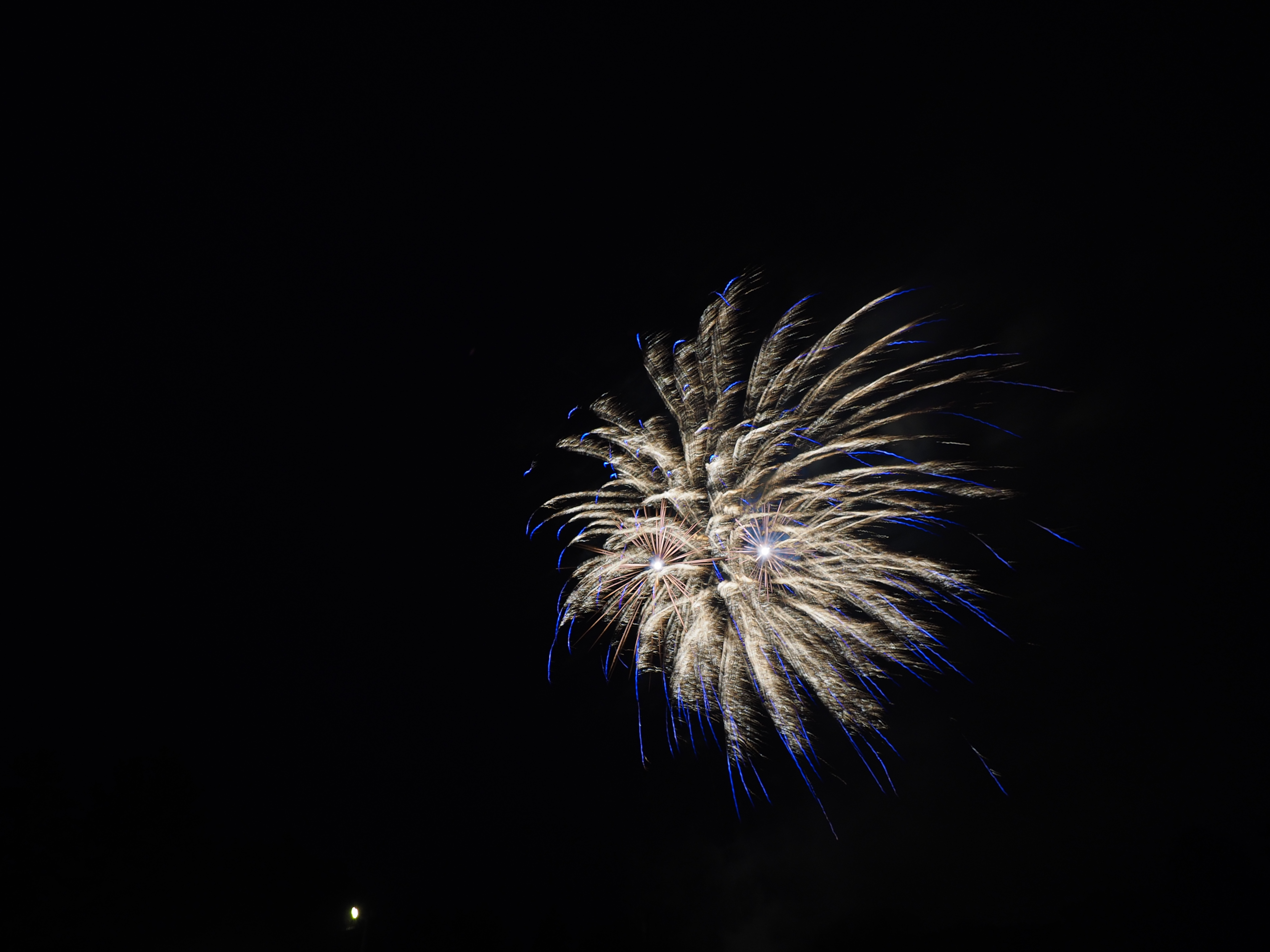 Picture #10: Ayer fireworks #10 Small: 1000x690, 91,773 bytes (90K), (html file) Large: 3000x2000, 3,294,829 bytes (3.1M), (html file) Copyright, Michael Meissner 2017, All rights reserved Olympus E-M1-I camera with Olympus-m43 12-40mm f/2.8 lens f/5.6, ISO 200, 8 sec, 12.0mm, manual mode, vivid color, SHQ, center weight metering, manual focus, noise reduction auto, noise filter low, live time/bulb, right eye priority 35mm equivalent focal length 24.0mm Programs used: crop, gimp Taken by Michael Meissner on July 01, 2017 21:25:11 Last modified on April 27, 2018 at 11:00 |