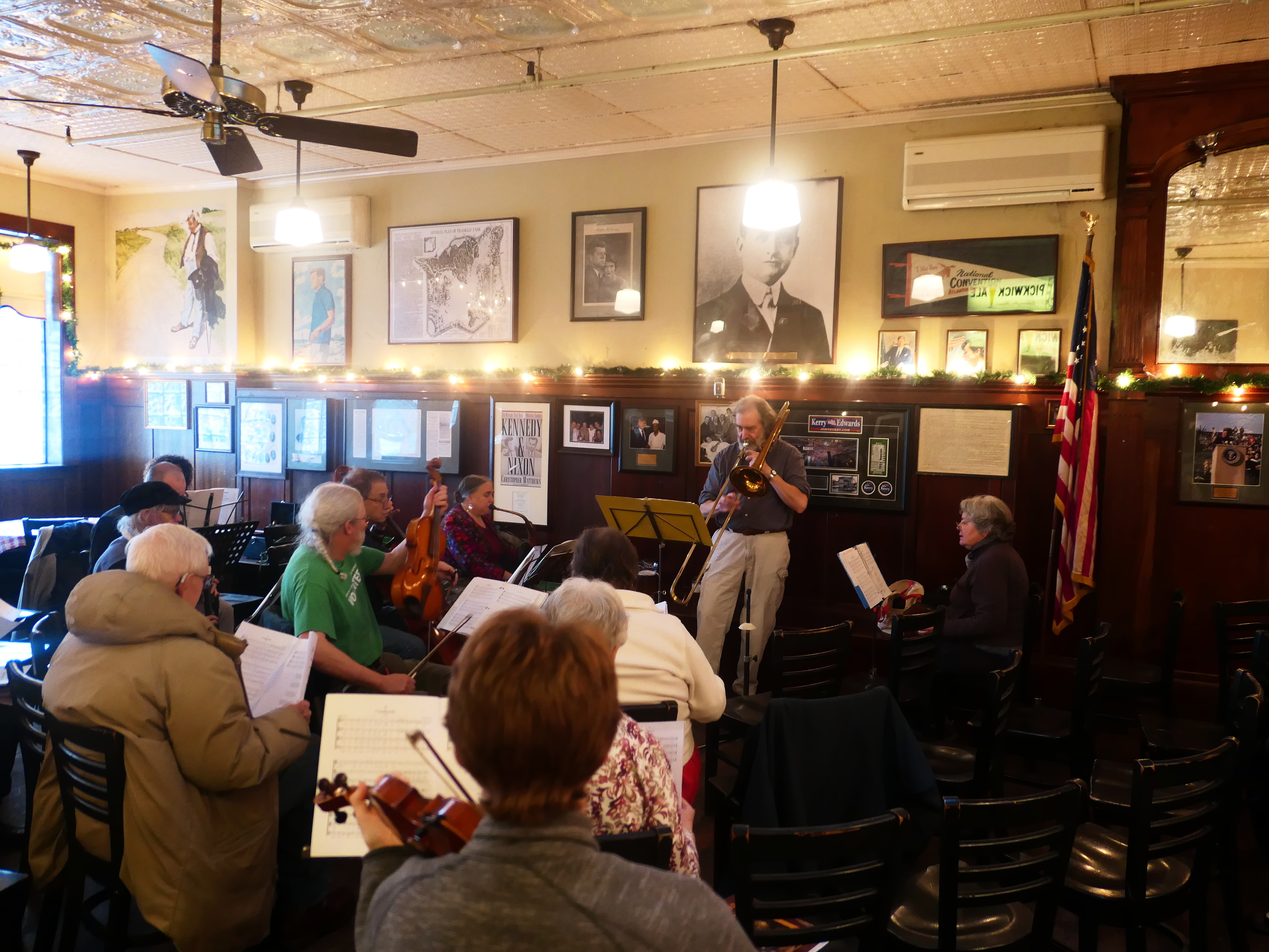 Picture #102: Christmas Pub Carol sing #4 Small: 1000x773, 131,473 bytes (129K), (html file) Large: 4000x3000, 4,278,026 bytes (4.1M), (html file) Copyright, Michael Meissner 2017, All rights reserved Panasonic LX-10 camera f/1.4, ISO 800, 1/60 sec, 8.8mm, auto mode, auto wb (3200), matrix metering, image stabilization 35mm equivalent focal length 26.0mm Programs used: crop, gimp, raw therapee Taken by Michael Meissner on December 03, 2017 16:19:57 Last modified on April 25, 2018 at 10:06 |