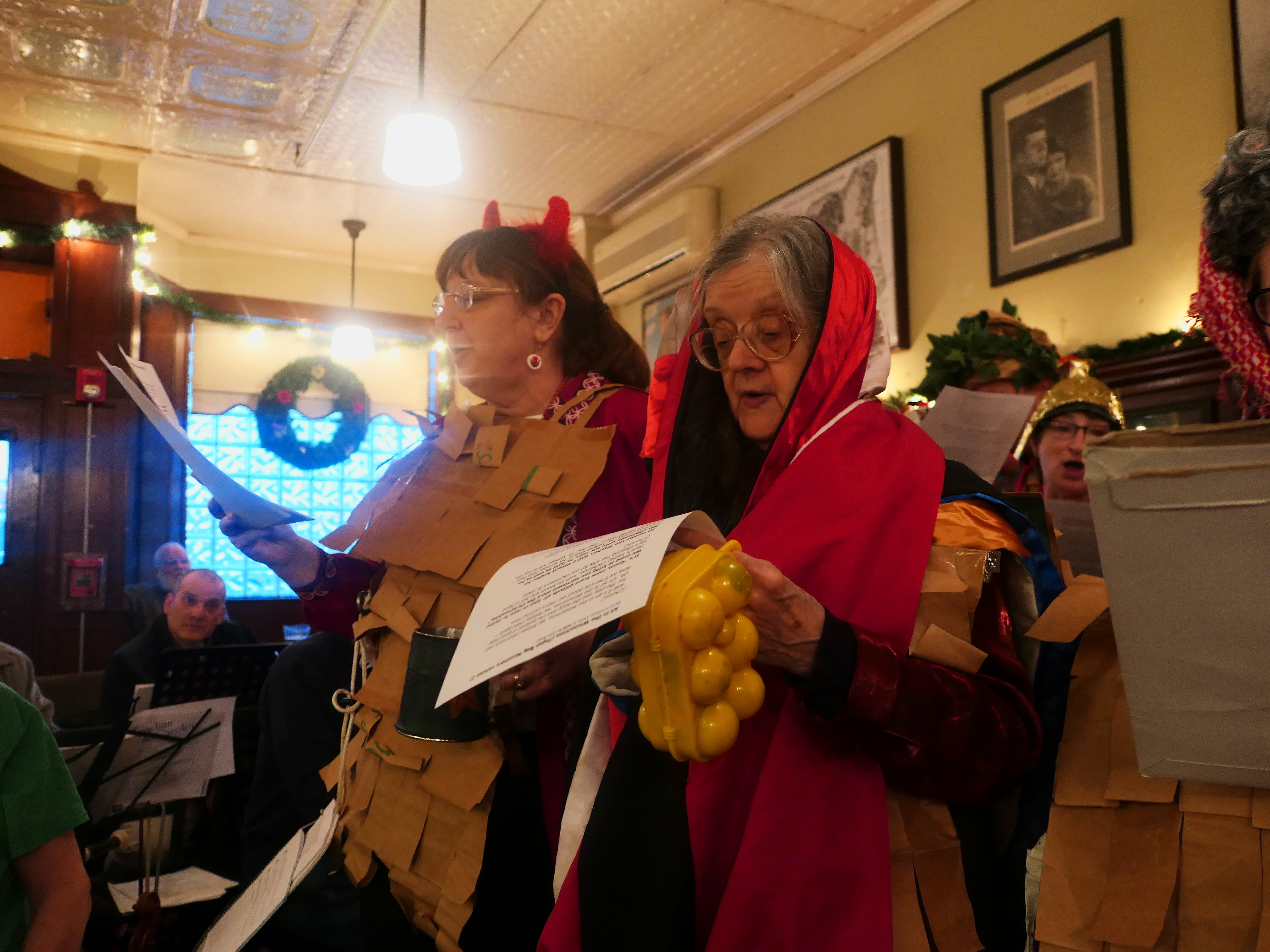Picture #116: Christmas Pub Carol sing Small: 960x743, 152,780 bytes (150K), (html file) Large: 4800x3600, 3,387,431 bytes (3.2M), (html file) Copyright, Michael Meissner 2017, All rights reserved Panasonic LX-10 camera f/1.4, ISO 640, 1/60 sec, 8.8mm, auto mode, auto wb (3200), matrix metering, image stabilization 35mm equivalent focal length 26.0mm Programs used: crop, raw therapee Taken by Michael Meissner on December 03, 2017 14:02:55 Last modified on April 25, 2018 at 10:05 |