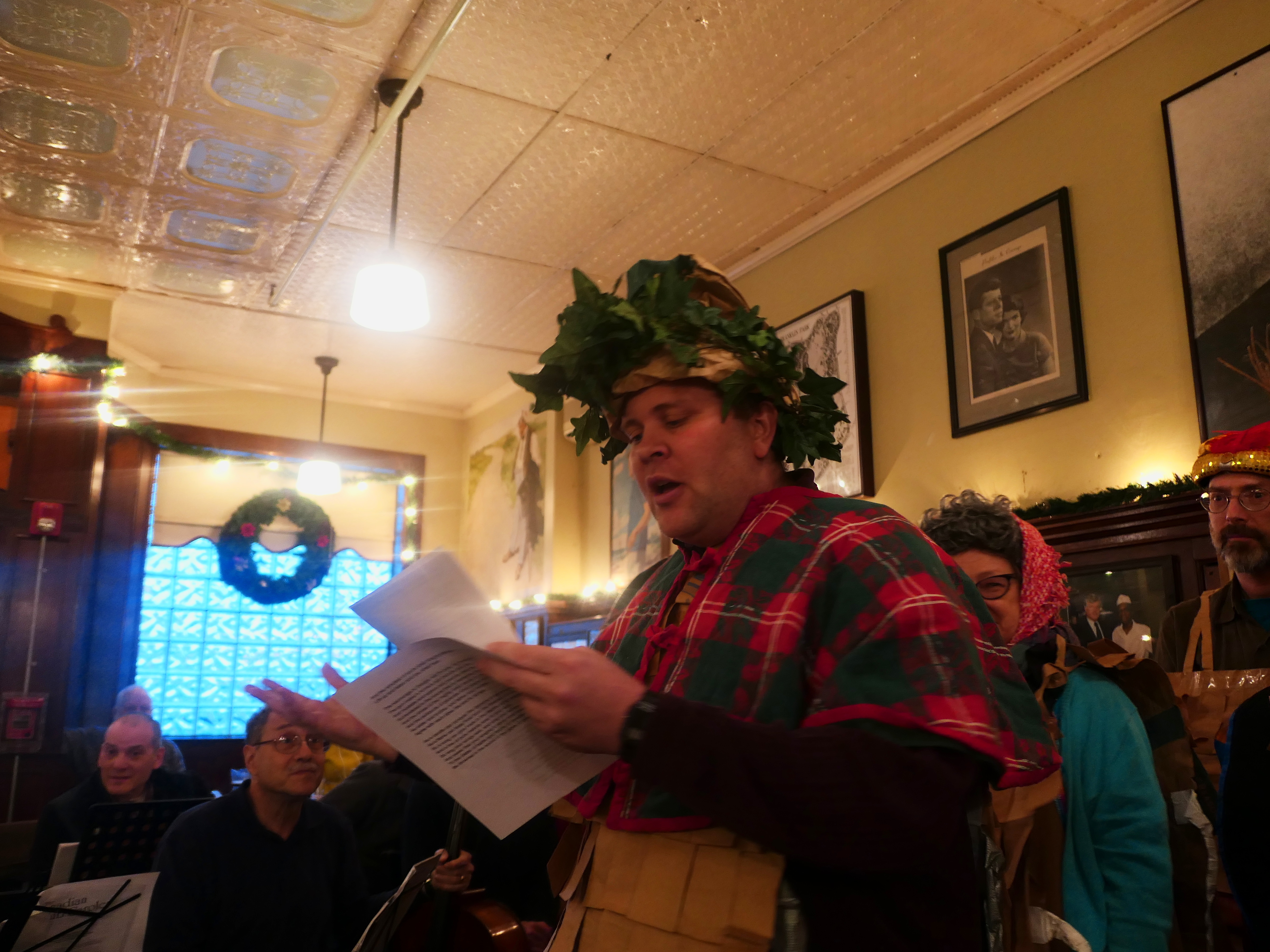 Picture #115: Christmas Pub Carol sing #2 Small: 960x743, 156,090 bytes (153K), (html file) Large: 4800x3600, 3,523,283 bytes (3.4M), (html file) Copyright, Michael Meissner 2017, All rights reserved Panasonic LX-10 camera f/1.4, ISO 400, 1/60 sec, 8.8mm, auto mode, auto wb (3300), matrix metering, image stabilization 35mm equivalent focal length 26.0mm Programs used: crop, raw therapee Taken by Michael Meissner on December 03, 2017 14:02:59 Last modified on April 25, 2018 at 10:05 |