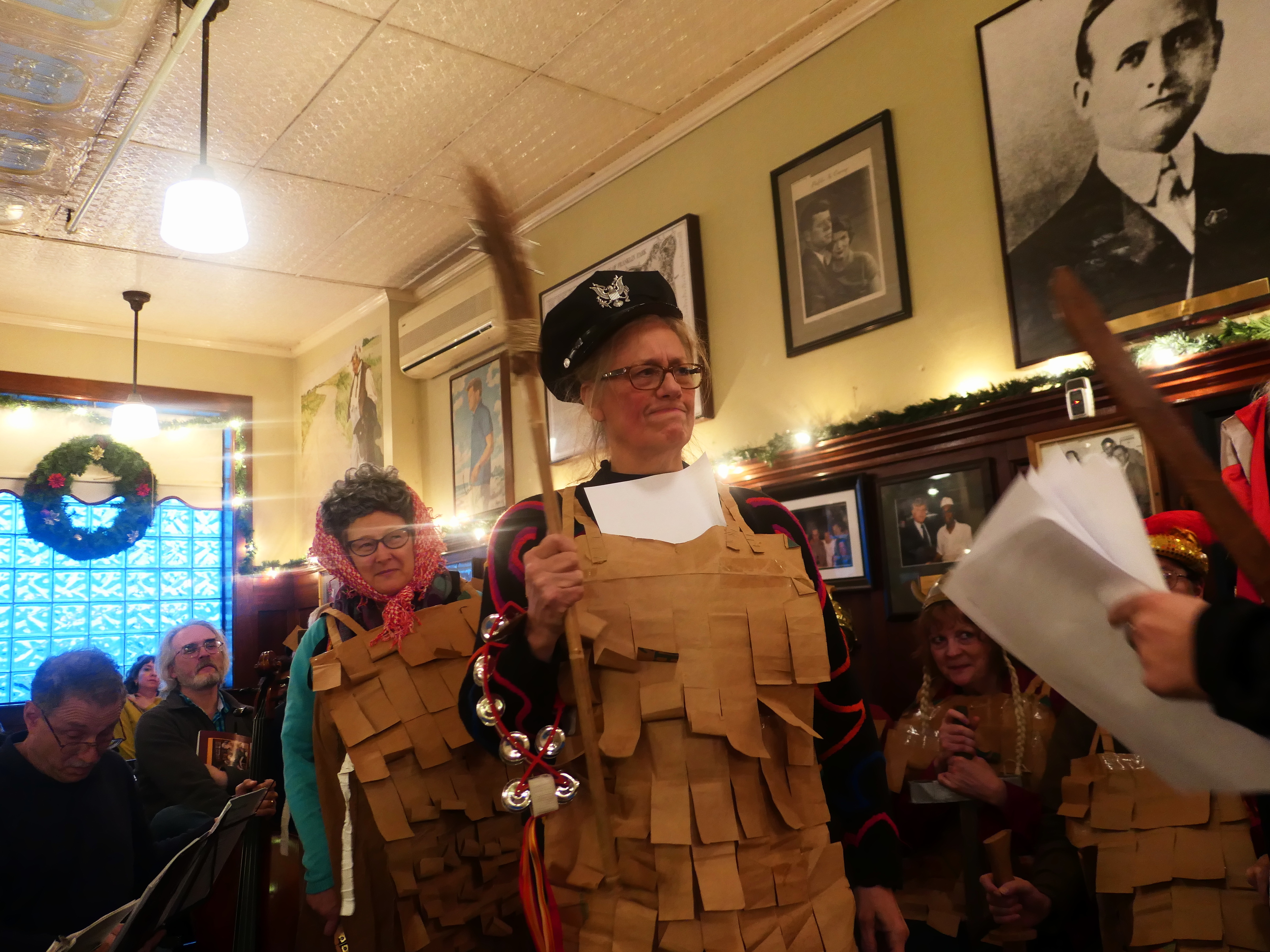 Picture #112: Paper bag mummers #2 Small: 960x743, 140,441 bytes (138K), (html file) Large: 4800x3600, 3,868,007 bytes (3.7M), (html file) Copyright, Michael Meissner 2017, All rights reserved Panasonic LX-10 camera f/1.4, ISO 500, 1/60 sec, 8.8mm, auto mode, auto wb (2800), matrix metering, bias -0.7, image stabilization 35mm equivalent focal length 26.0mm Programs used: crop, raw therapee Taken by Michael Meissner on December 03, 2017 15:56:31 Last modified on April 25, 2018 at 10:05 |