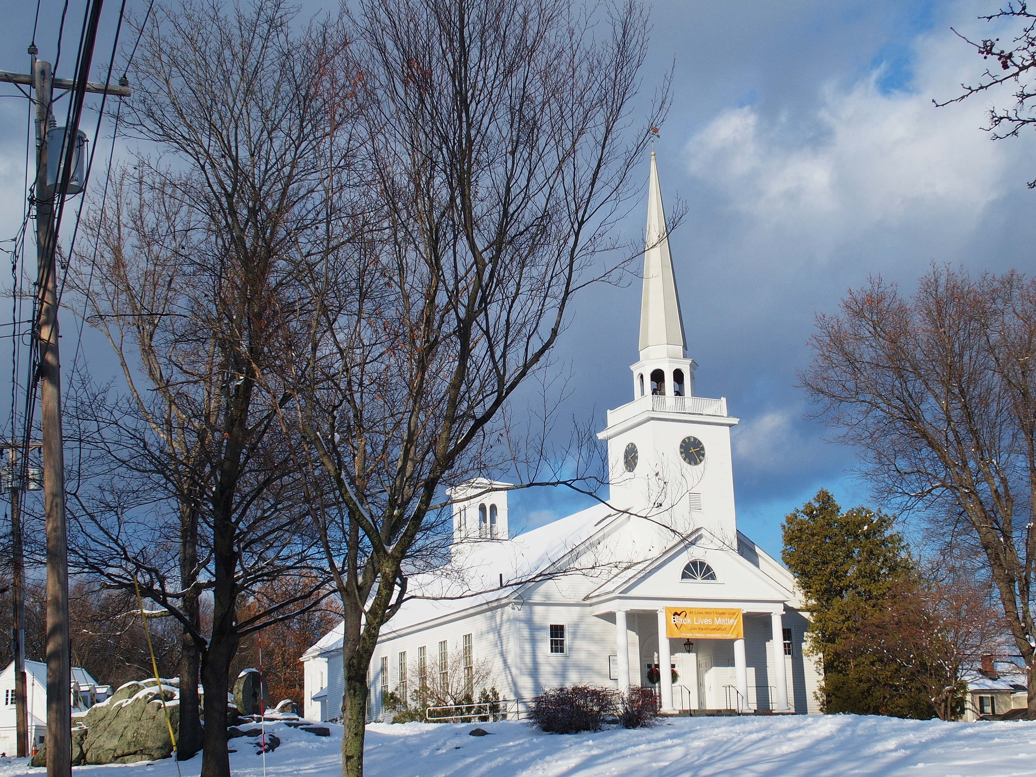 Picture #80: Harvard Unitarian church in winter Small: 900x698, 224,029 bytes (219K), (html file) Large: 3600x2700, 4,037,470 bytes (3.9M), (html file) Copyright, Michael Meissner 2017, All rights reserved Olympus Stylus-1 camera f/4.5, ISO 100, 1/800 sec, 9.8mm, auto mode, vivid color, SHQ, matrix metering, IS Auto, noise reduction auto, noise filter low 35mm equivalent focal length 46.0mm Programs used: crop, raw therapee Taken by Michael Meissner on December 10, 2017 14:21:37 Last modified on April 25, 2018 at 10:07 |