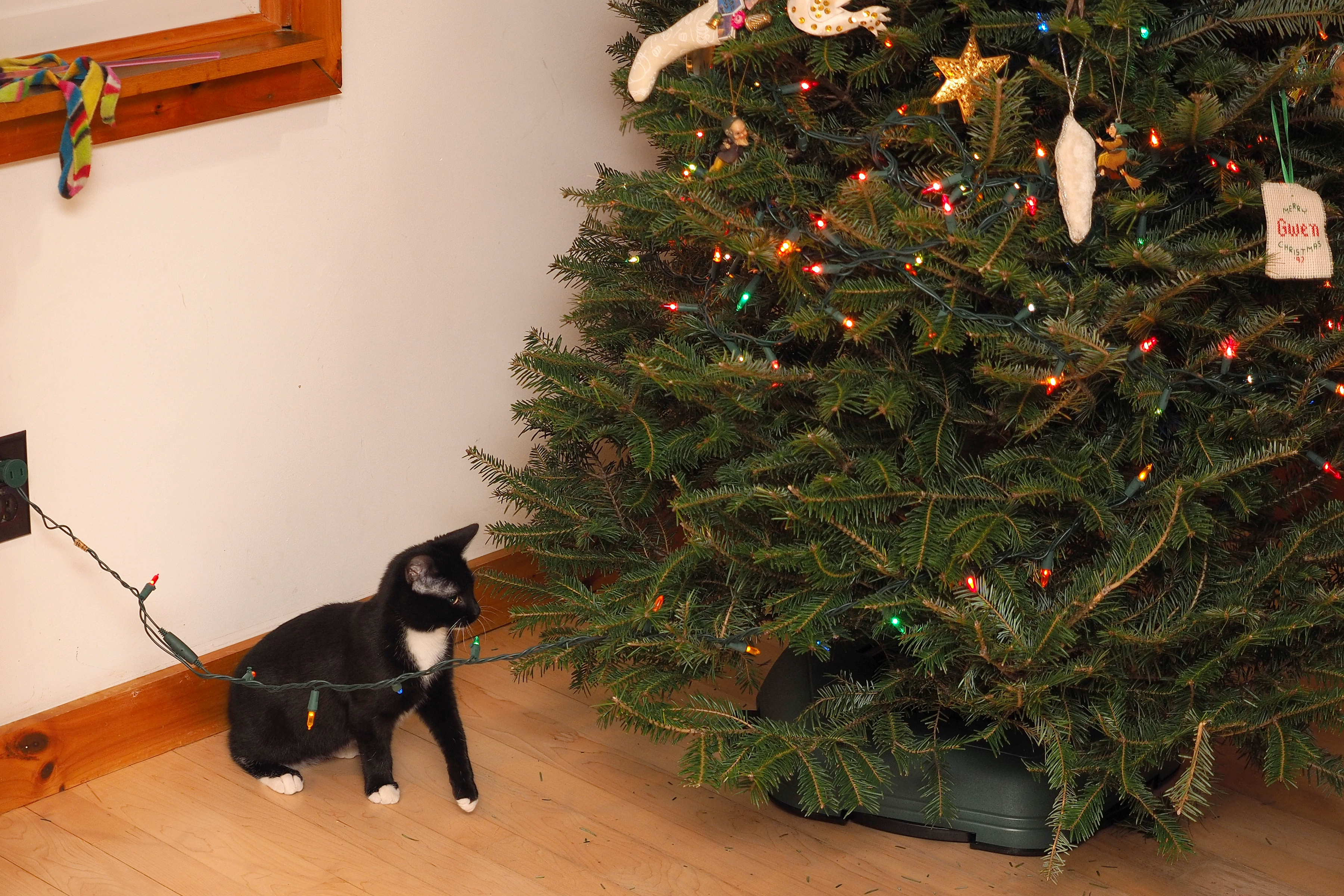 Picture #2: Diana, the Christmas Kitty #3 Small: 800x623, 96,187 bytes (94K), (html file) Large: 3200x2400, 6,394,117 bytes (6.1M), (html file) Copyright, Michael Meissner 2017, All rights reserved Olympus E-M1-I camera with Olympus-m43 12-40mm f/2.8 lens f/2.8, ISO 320, flash (+0.33 flash compensation), 1/60 sec, 40.0mm, auto mode, vivid color, SHQ, flash (5500K), matrix metering, IS Auto, noise filter low, anti-shock 35mm equivalent focal length 80.0mm Programs used: crop, gimp Taken by Michael Meissner on December 31, 2017 18:01:35 Last modified on April 25, 2018 at 10:51 This picture is one of my favorites. |