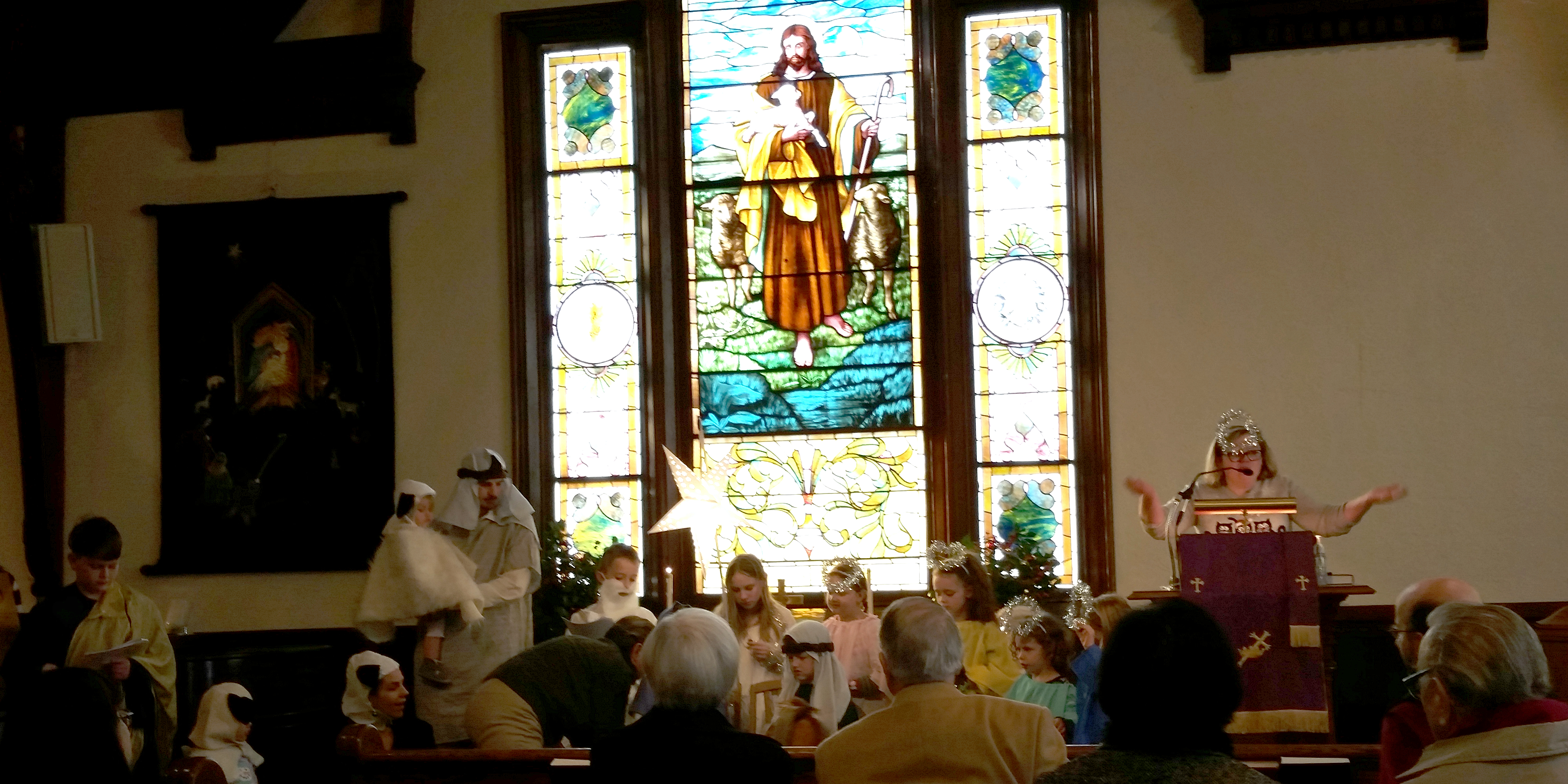 Picture #47: Church Christmas pagent Small: 1000x523, 94,114 bytes (92K), (html file) Large: 4000x2000, 5,993,275 bytes (5.7M), (html file) Copyright, Michael Meissner 2017, All rights reserved Samsung S5 phone f/2.2, ISO 50, flash, 1/30 sec, 4.8mm, auto mode, center weight metering 35mm equivalent focal length 31.0mm Programs used: gimp Taken by Michael Meissner on December 17, 2017 11:28:48 Last modified on April 25, 2018 at 10:04 |