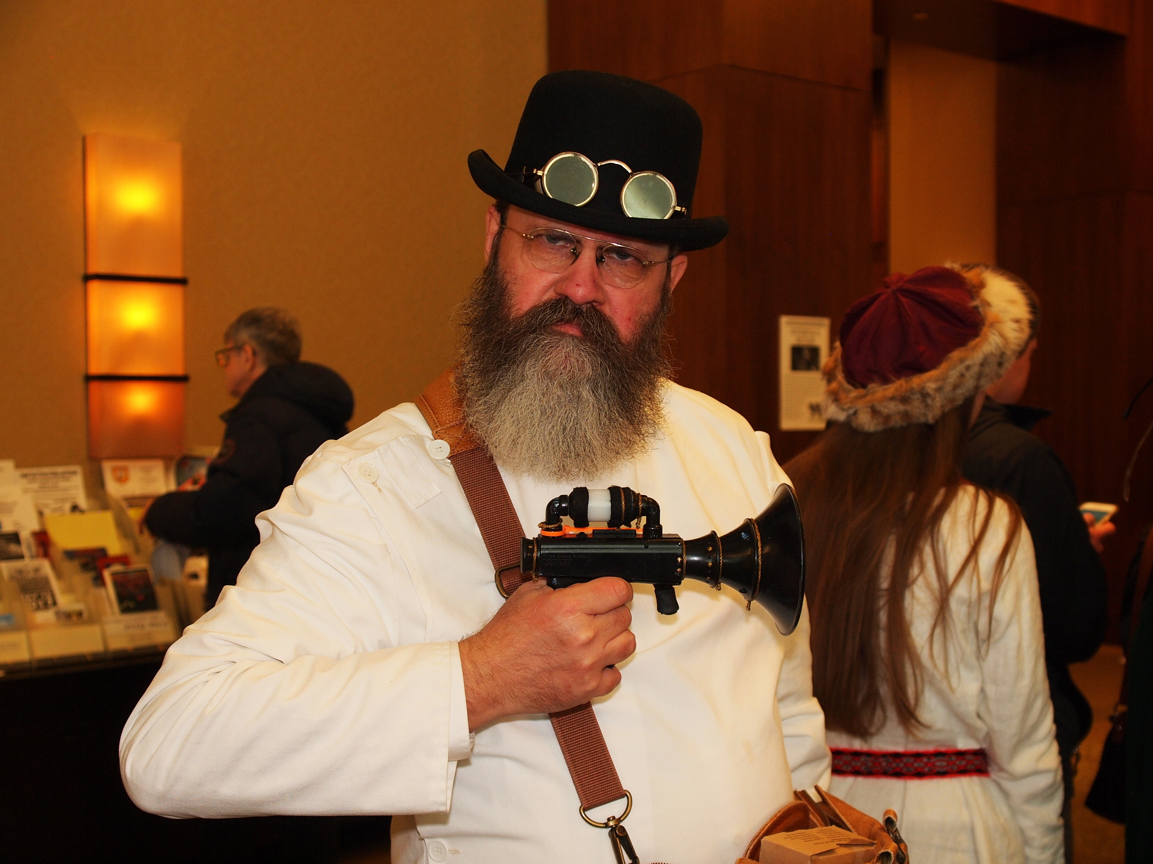 Picture #19: Cosplayers #4 Small: 920x713, 119,025 bytes (117K), (html file) Large: 4600x3450, 6,247,144 bytes (6.0M), (html file) Copyright, Michael Meissner 2018, All rights reserved Olympus E-PM2 camera with Olympus-m43 14-42mm-IIR f/3.5-5.6 lens f/4.0, ISO 800, flash (+0.33 flash compensation), 1/60 sec, 20.0mm, auto mode, vivid color, matrix metering, IS1 (All Direction Shake IS), noise filter low 35mm equivalent focal length 40.0mm Programs used: crop, raw therapee Taken by Michael Meissner on January 14, 2018 20:17:34 Last modified on April 27, 2018 at 22:44 |