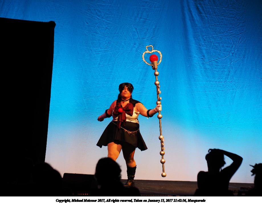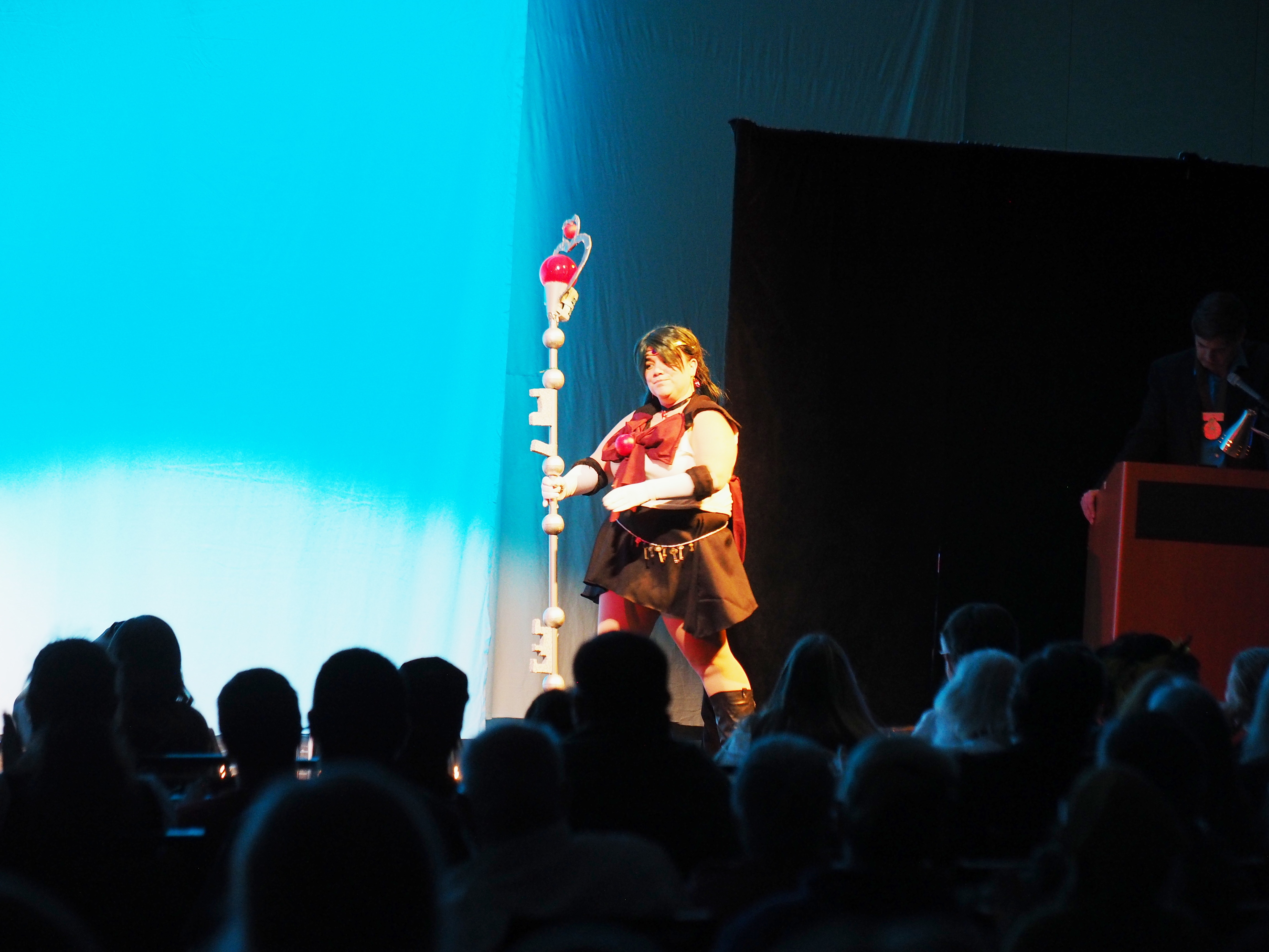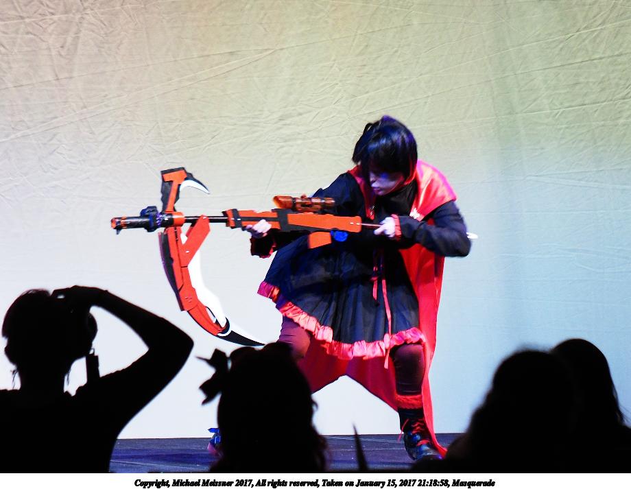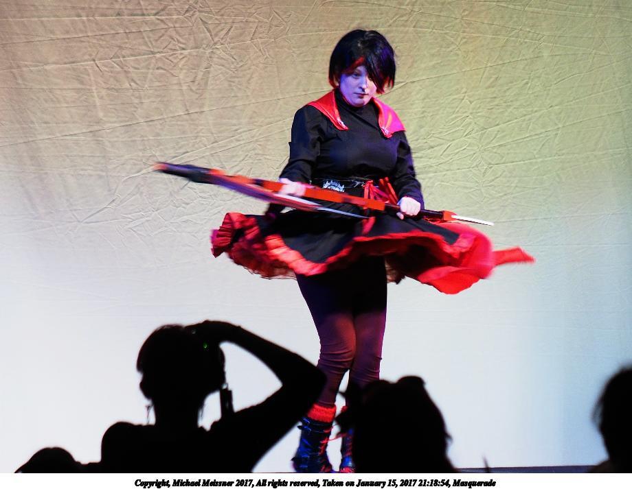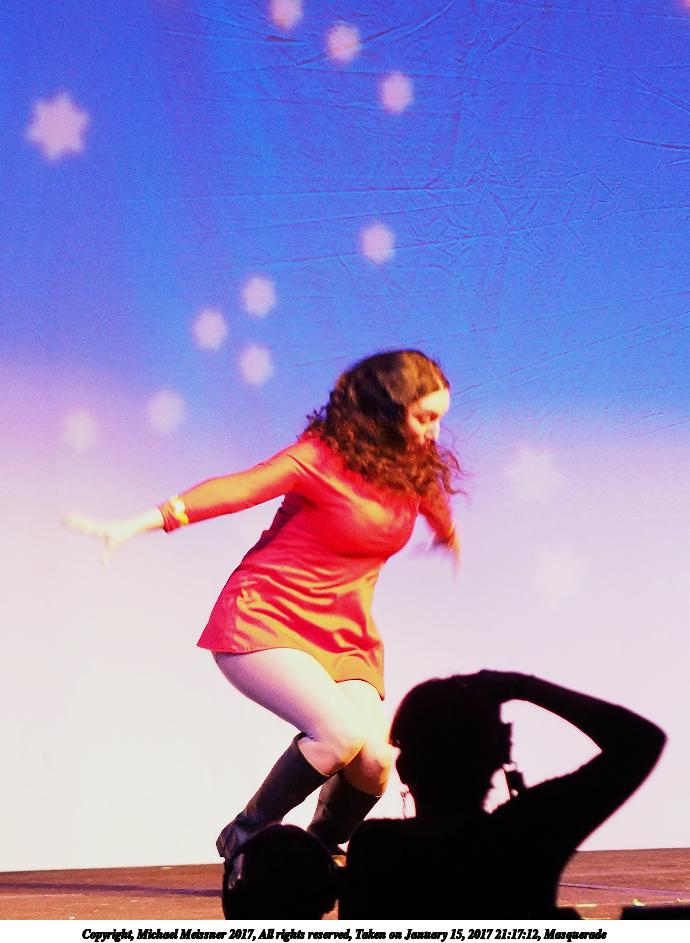 Picture #25: Cosplayer #5 Small: 920x713, 129,903 bytes (127K), (html file) Large: 4600x3450, 7,031,521 bytes (6.7M), (html file) Copyright, Michael Meissner 2018, All rights reserved Olympus E-PM2 camera with Olympus-m43 14-42mm-IIR f/3.5-5.6 lens f/3.5, ISO 800, flash (+0.33 flash compensation), 1/60 sec, 14.0mm, auto mode, vivid color, matrix metering, IS1 (All Direction Shake IS), noise filter low 35mm equivalent focal length 28.0mm Programs used: crop, raw therapee Taken by Michael Meissner on January 14, 2018 16:56:50 Last modified on April 27, 2018 at 22:44 |
