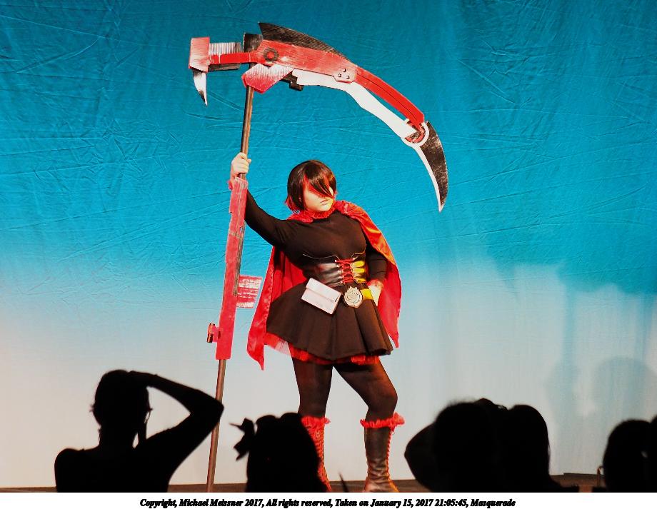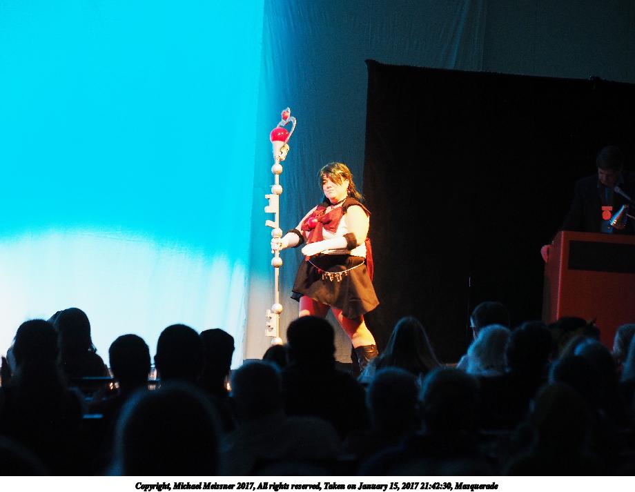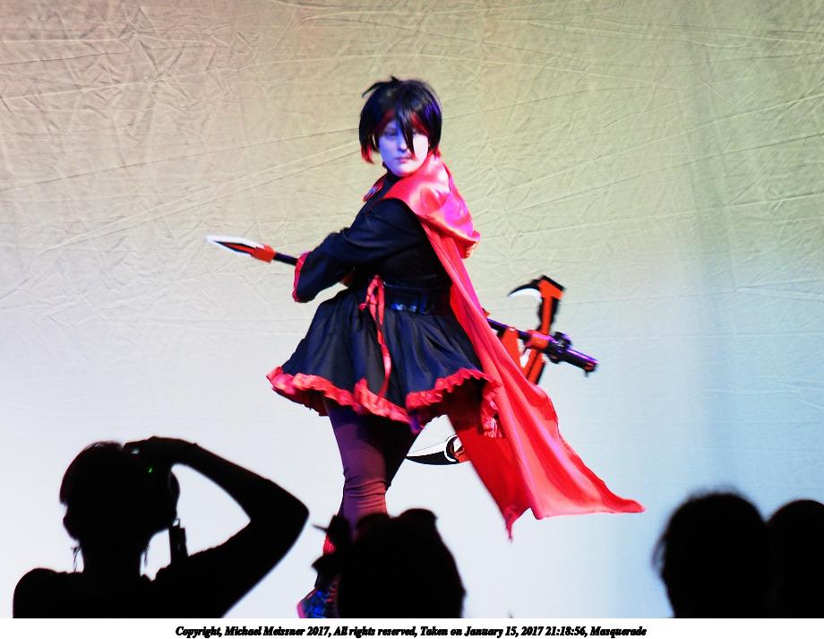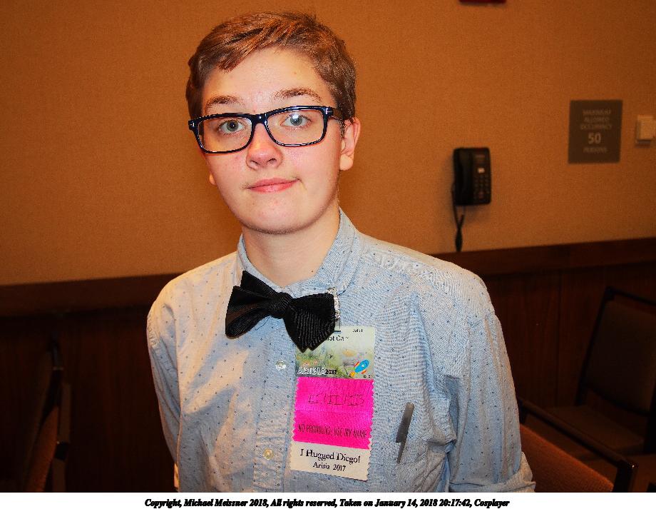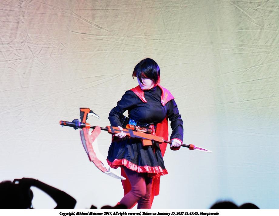 Picture #25: Cosplayer #5 Small: 920x713, 129,903 bytes (127K), (html file) Large: 4600x3450, 7,031,521 bytes (6.7M), (html file) Copyright, Michael Meissner 2018, All rights reserved Olympus E-PM2 camera with Olympus-m43 14-42mm-IIR f/3.5-5.6 lens f/3.5, ISO 800, flash (+0.33 flash compensation), 1/60 sec, 14.0mm, auto mode, vivid color, matrix metering, IS1 (All Direction Shake IS), noise filter low 35mm equivalent focal length 28.0mm Programs used: crop, raw therapee Taken by Michael Meissner on January 14, 2018 16:56:50 Last modified on April 27, 2018 at 22:44 |