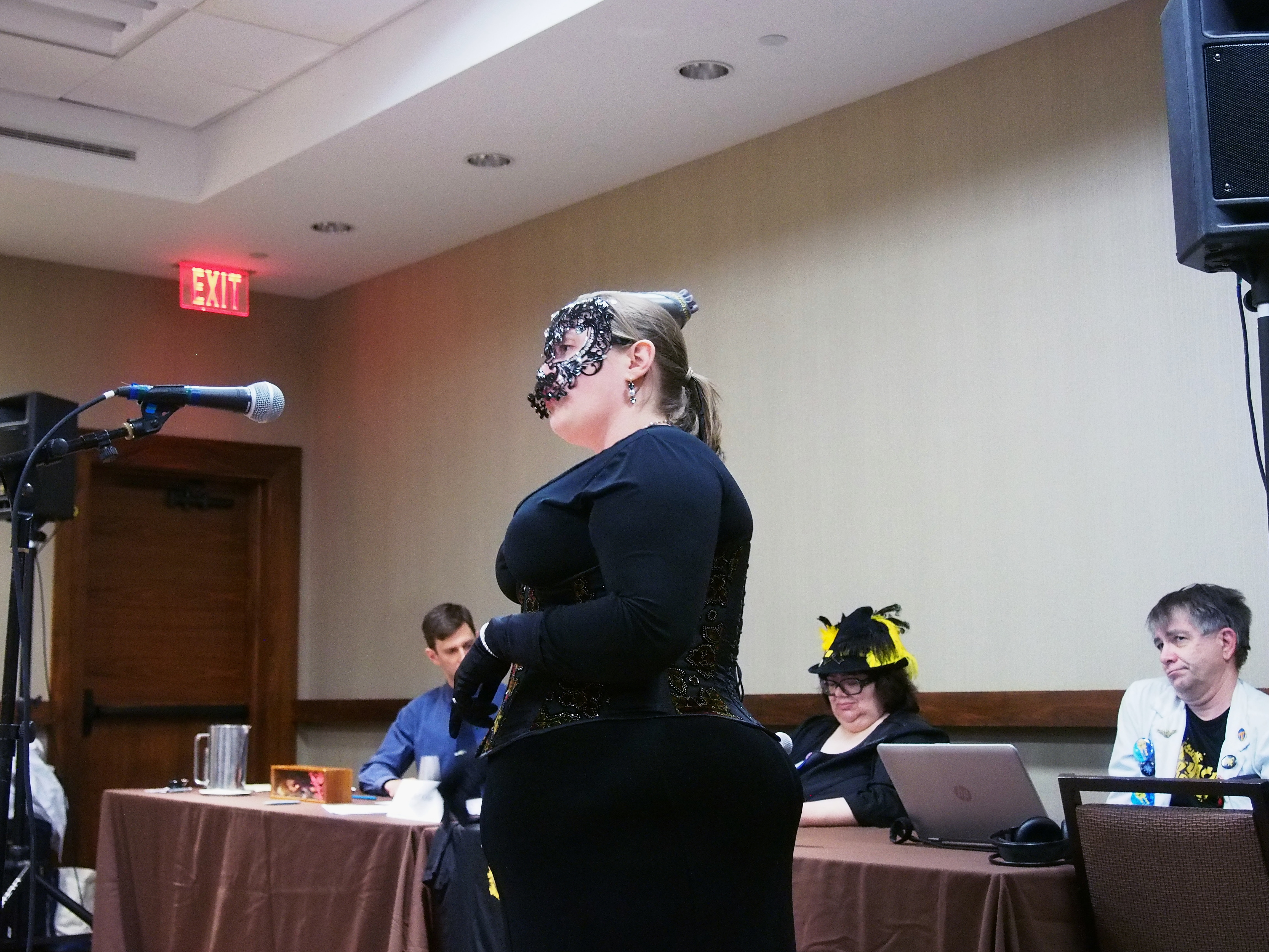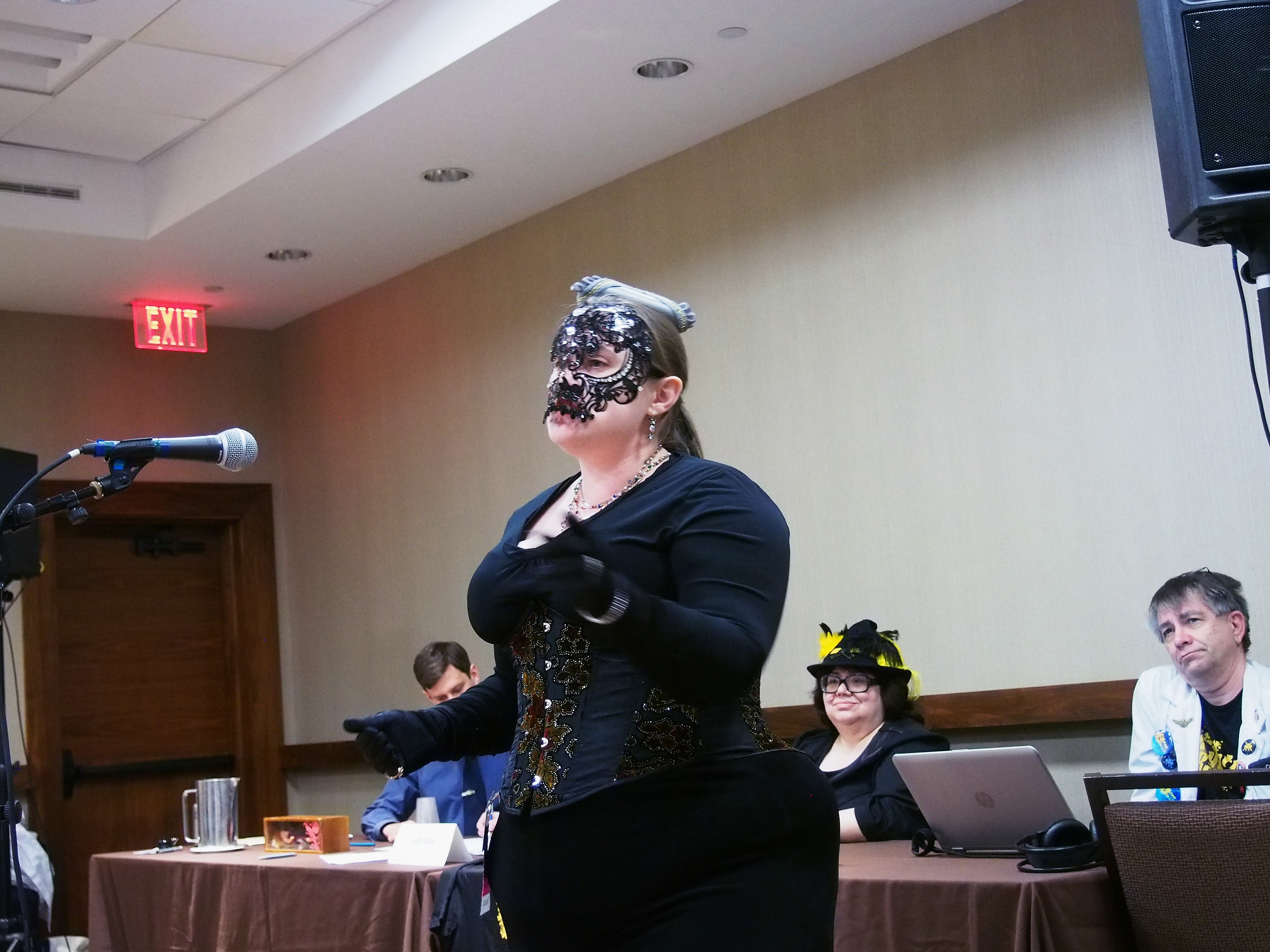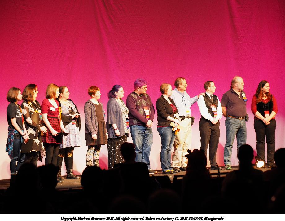 Picture #37: Masquerade post-show #7 Small: 920x713, 158,117 bytes (155K), (html file) Large: 4600x3450, 6,861,011 bytes (6.5M), (html file) Copyright, Michael Meissner 2017, All rights reserved Olympus E-M5-I camera with Olympus-m43 12-40mm f/2.8 lens f/2.8, ISO 1000, 1/60 sec, 12.0mm, auto mode, vivid color, matrix metering, IS1 (All Direction Shake IS), noise filter low 35mm equivalent focal length 24.0mm Programs used: crop, raw therapee Taken by Michael Meissner on January 15, 2017 22:44:52 Last modified on April 27, 2018 at 22:51 |