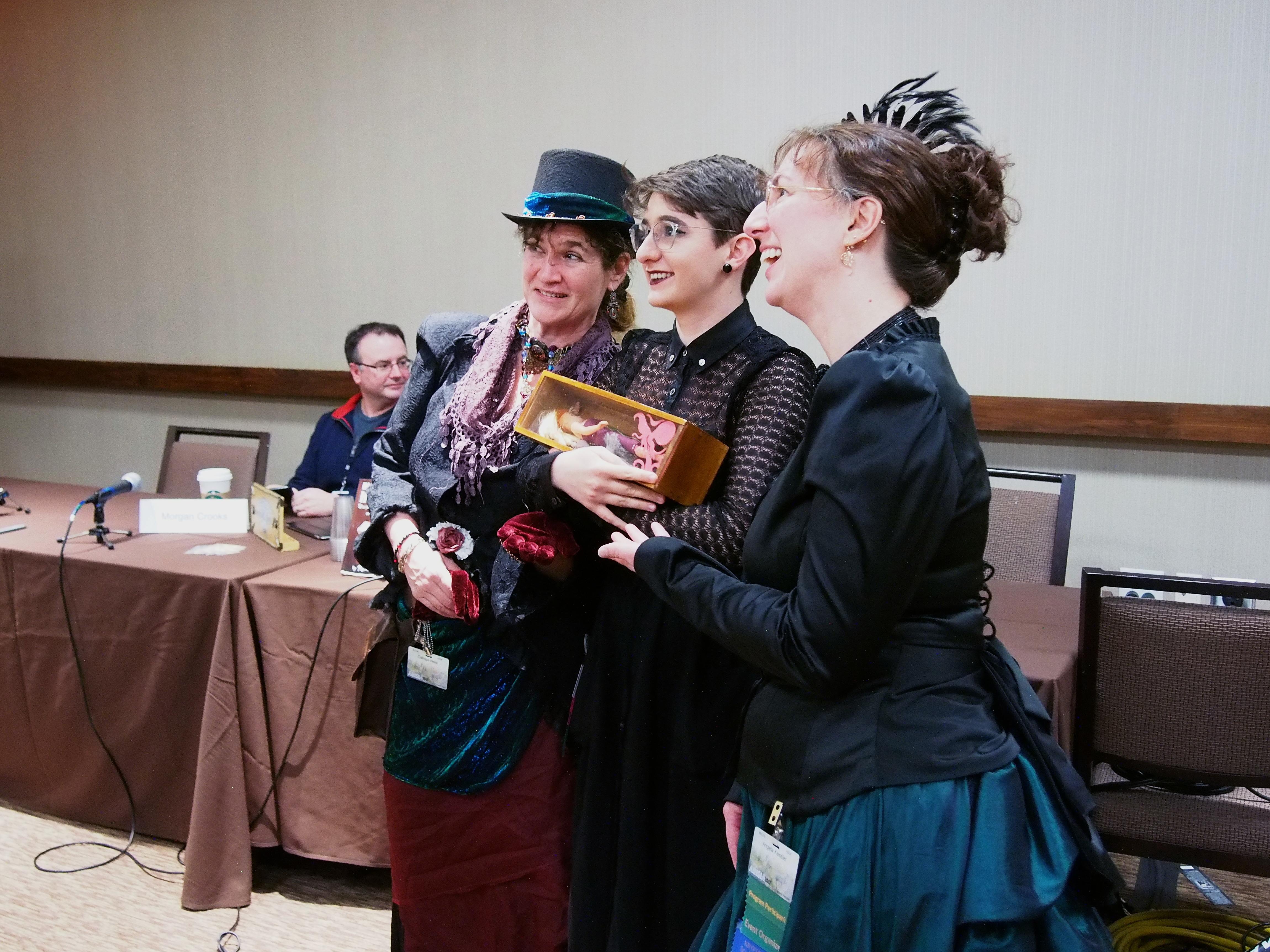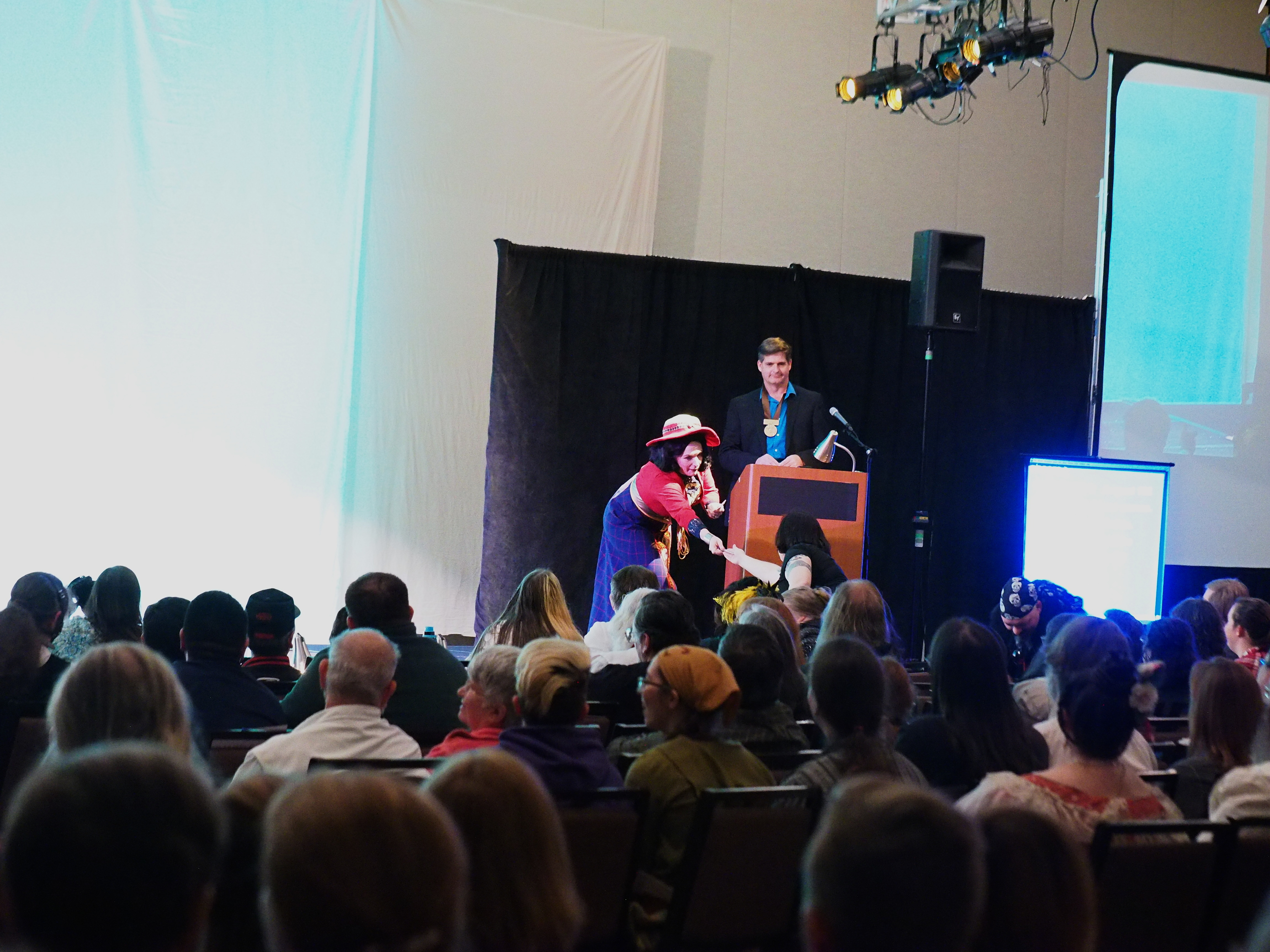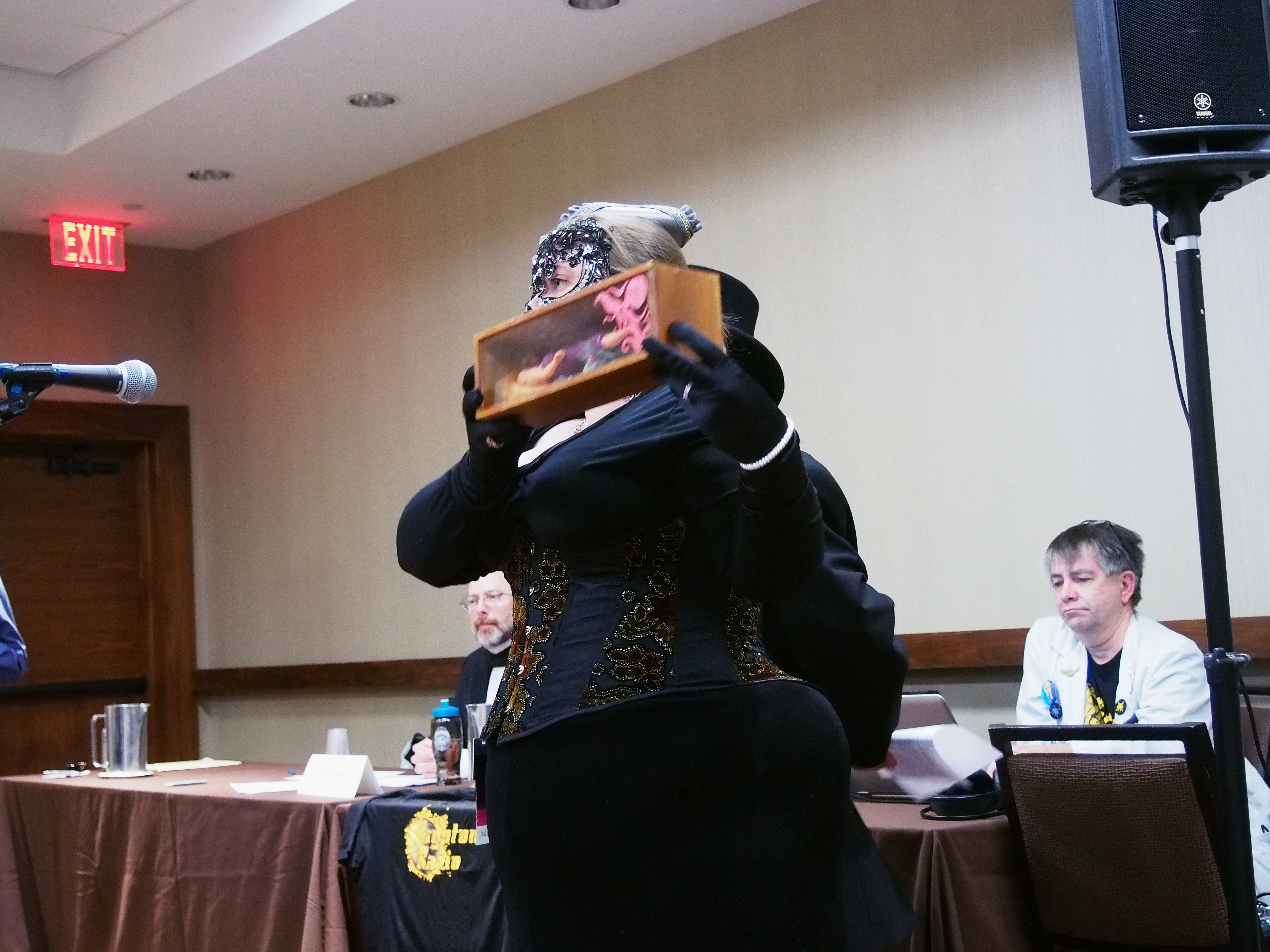 Picture #37: Masquerade post-show #7 Small: 920x713, 158,117 bytes (155K), (html file) Large: 4600x3450, 6,861,011 bytes (6.5M), (html file) Copyright, Michael Meissner 2017, All rights reserved Olympus E-M5-I camera with Olympus-m43 12-40mm f/2.8 lens f/2.8, ISO 1000, 1/60 sec, 12.0mm, auto mode, vivid color, matrix metering, IS1 (All Direction Shake IS), noise filter low 35mm equivalent focal length 24.0mm Programs used: crop, raw therapee Taken by Michael Meissner on January 15, 2017 22:44:52 Last modified on April 27, 2018 at 22:51 |