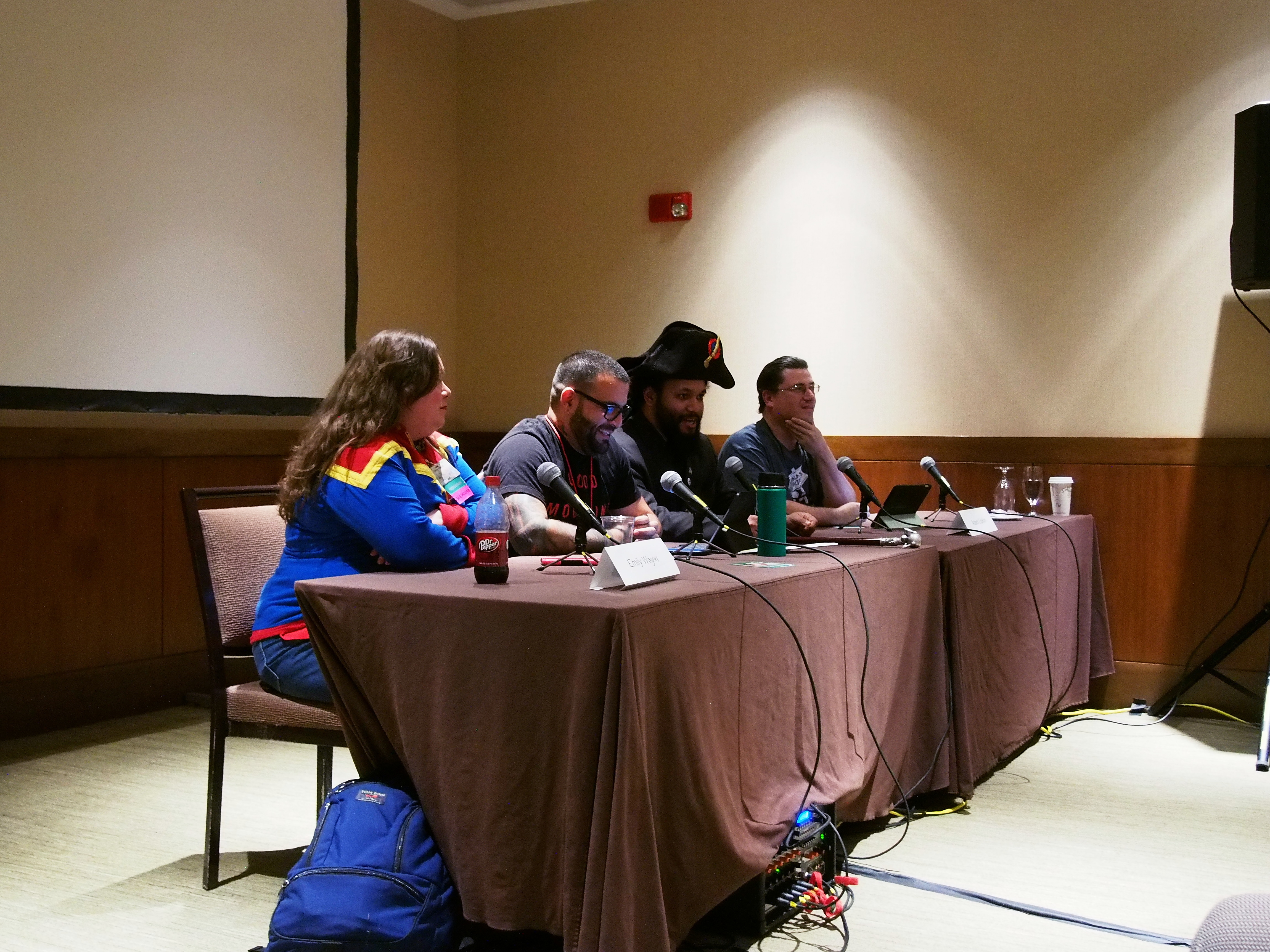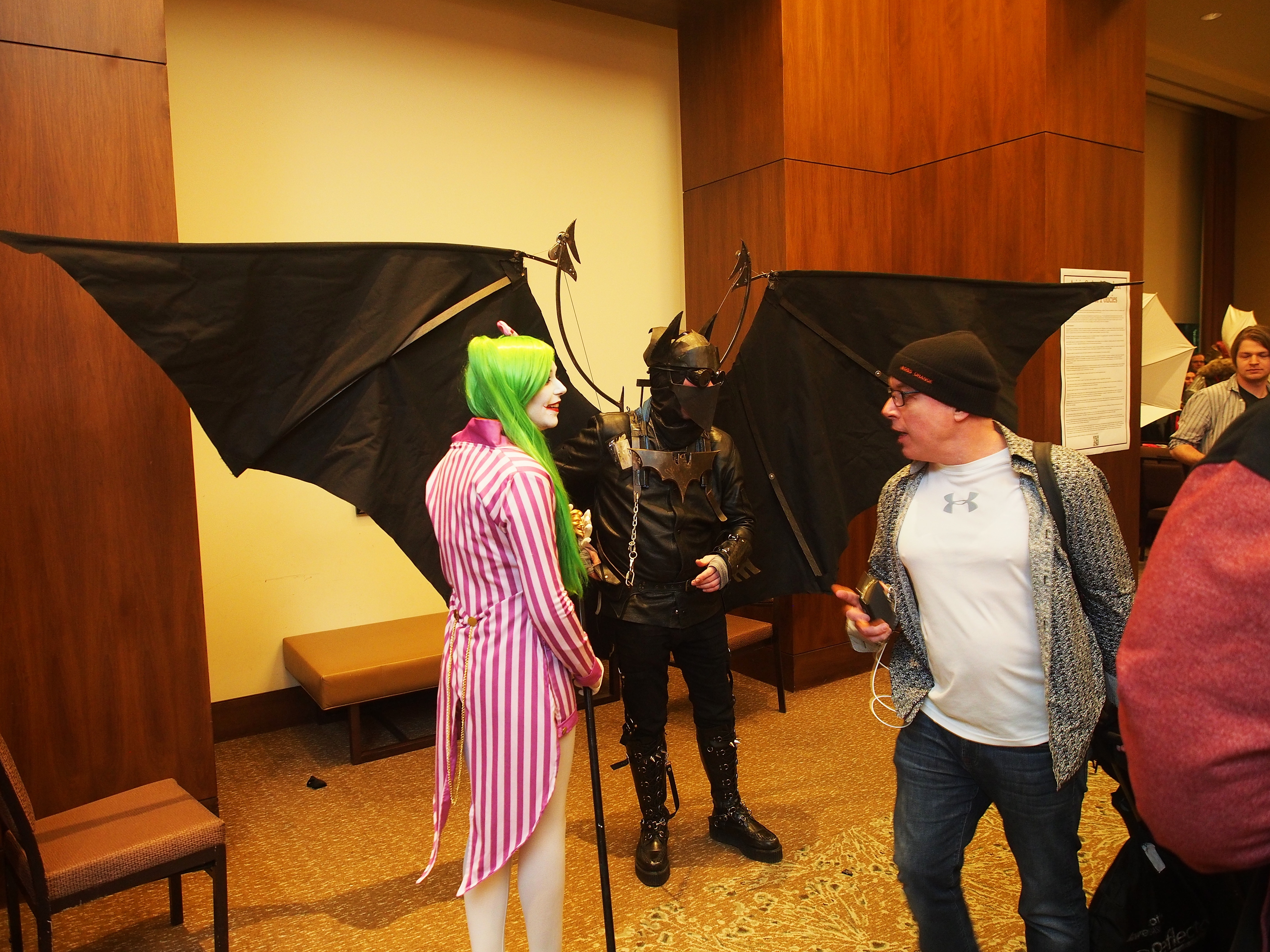 Picture #31: Cosplayers #3 Small: 920x713, 167,398 bytes (164K), (html file) Large: 4600x3450, 7,617,093 bytes (7.3M), (html file) Copyright, Michael Meissner 2018, All rights reserved Olympus E-PM2 camera with Olympus-m43 14-42mm-IIR f/3.5-5.6 lens f/3.5, ISO 800, flash (+0.33 flash compensation), 1/60 sec, 14.0mm, auto mode, vivid color, matrix metering, IS1 (All Direction Shake IS), noise filter low 35mm equivalent focal length 28.0mm Programs used: crop, raw therapee Taken by Michael Meissner on January 14, 2018 16:32:25 Last modified on April 27, 2018 at 22:43 |