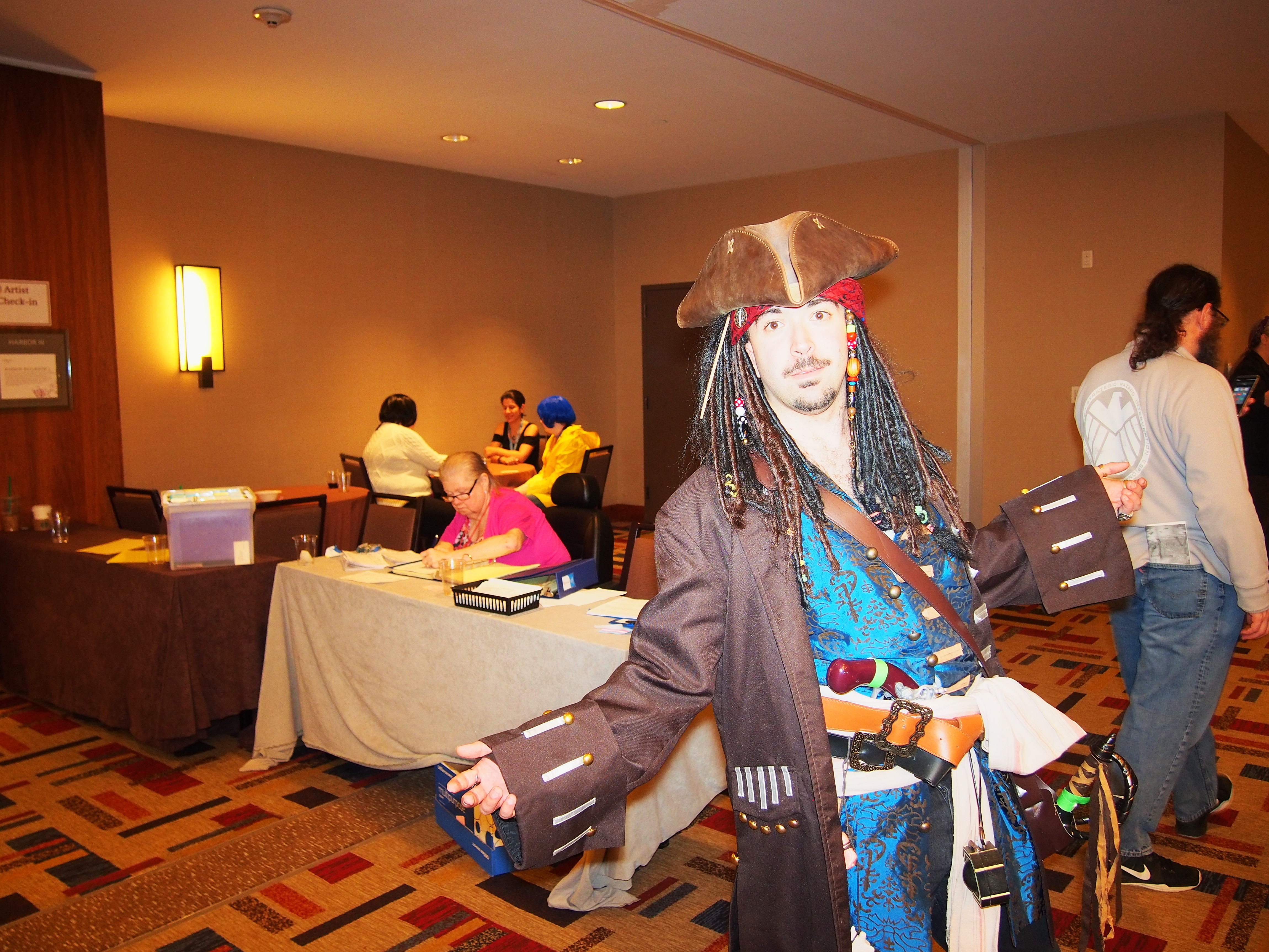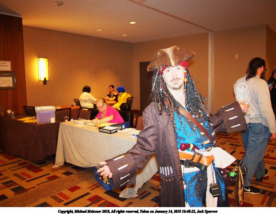 Picture #28: Jack Sparrow Small: 920x713, 142,998 bytes (140K), (html file) Large: 4600x3450, 6,815,693 bytes (6.5M), (html file) Copyright, Michael Meissner 2018, All rights reserved Olympus E-PM2 camera with Olympus-m43 14-42mm-IIR f/3.5-5.6 lens f/3.5, ISO 800, flash (+0.33 flash compensation), 1/60 sec, 14.0mm, auto mode, vivid color, matrix metering, IS1 (All Direction Shake IS), noise filter low 35mm equivalent focal length 28.0mm Programs used: crop, raw therapee Taken by Michael Meissner on January 14, 2018 16:48:25 Last modified on April 27, 2018 at 22:43 |