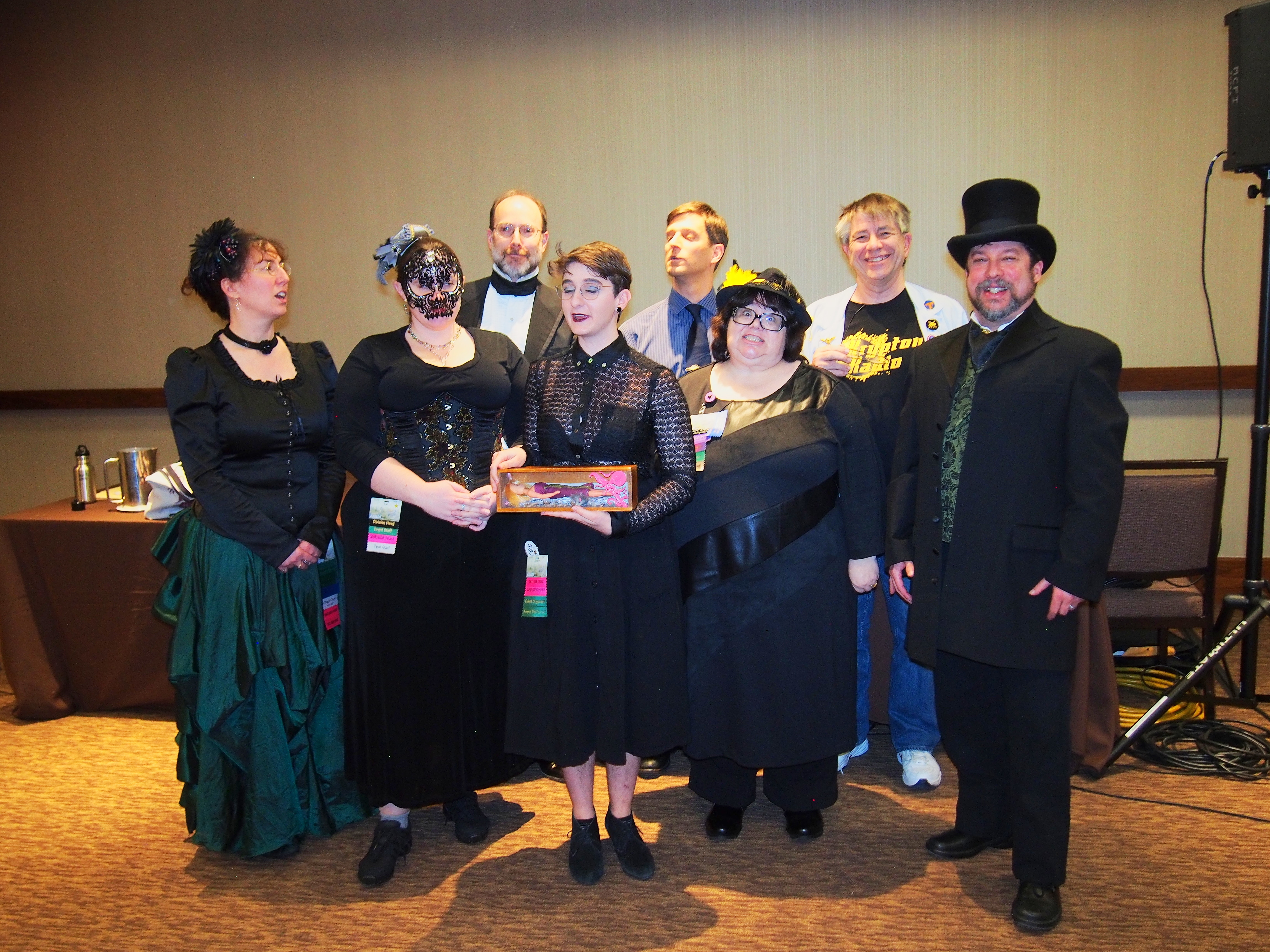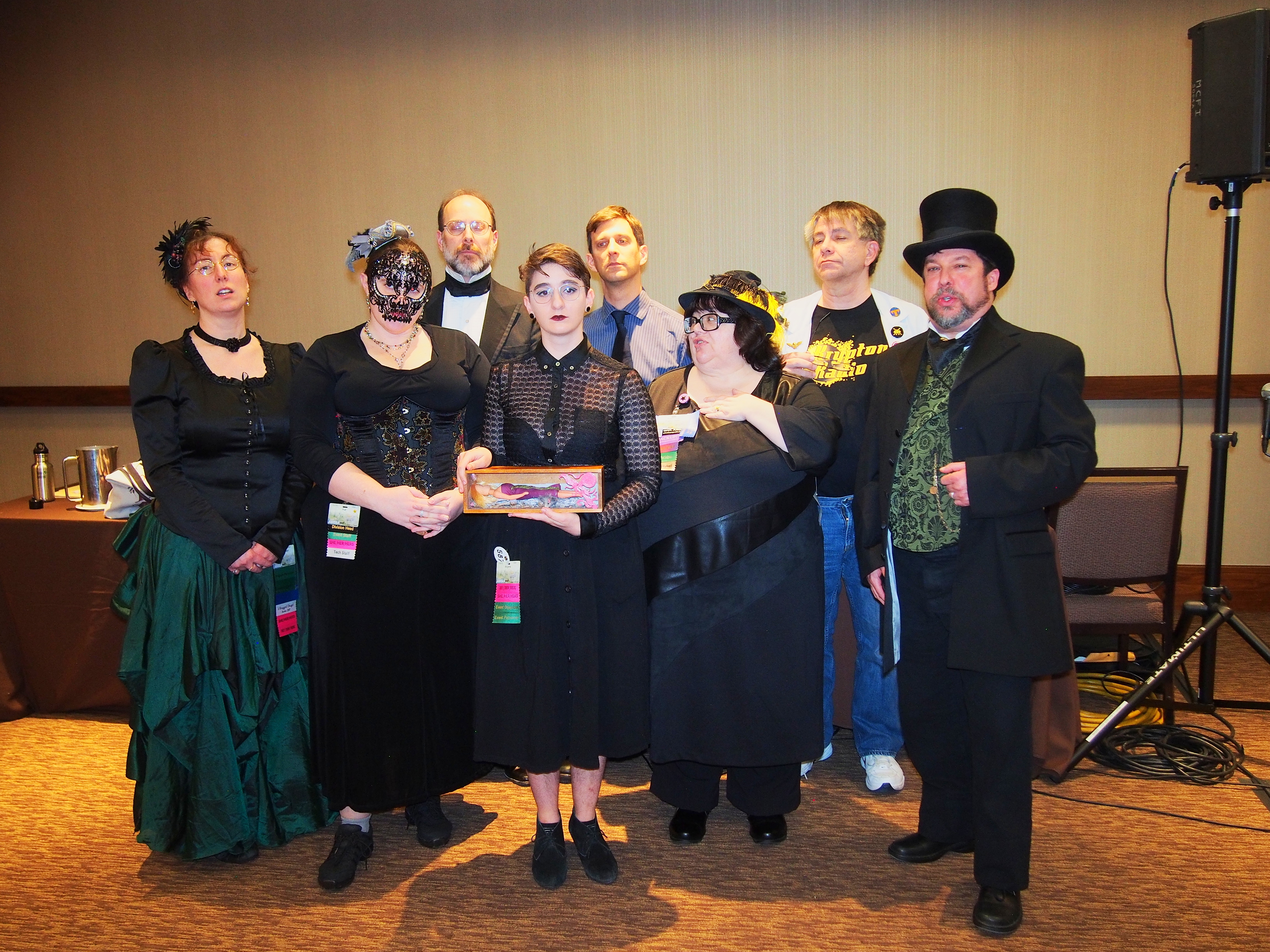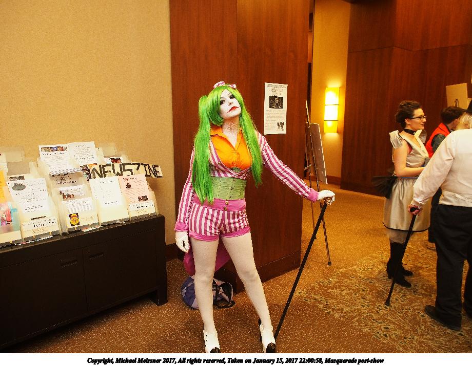 Picture #45: Masquerade post-show #3 Small: 920x713, 142,838 bytes (140K), (html file) Large: 4600x3450, 6,799,434 bytes (6.5M), (html file) Copyright, Michael Meissner 2017, All rights reserved Olympus E-M5-I camera with Olympus-m43 12-40mm f/2.8 lens f/2.8, ISO 800, FL-36R flash (+0.33 flash compensation), 1/60 sec, 12.0mm, auto mode, vivid color, matrix metering, IS1 (All Direction Shake IS), noise filter low 35mm equivalent focal length 24.0mm Programs used: crop, raw therapee Taken by Michael Meissner on January 15, 2017 22:00:58 Last modified on April 27, 2018 at 22:51 |