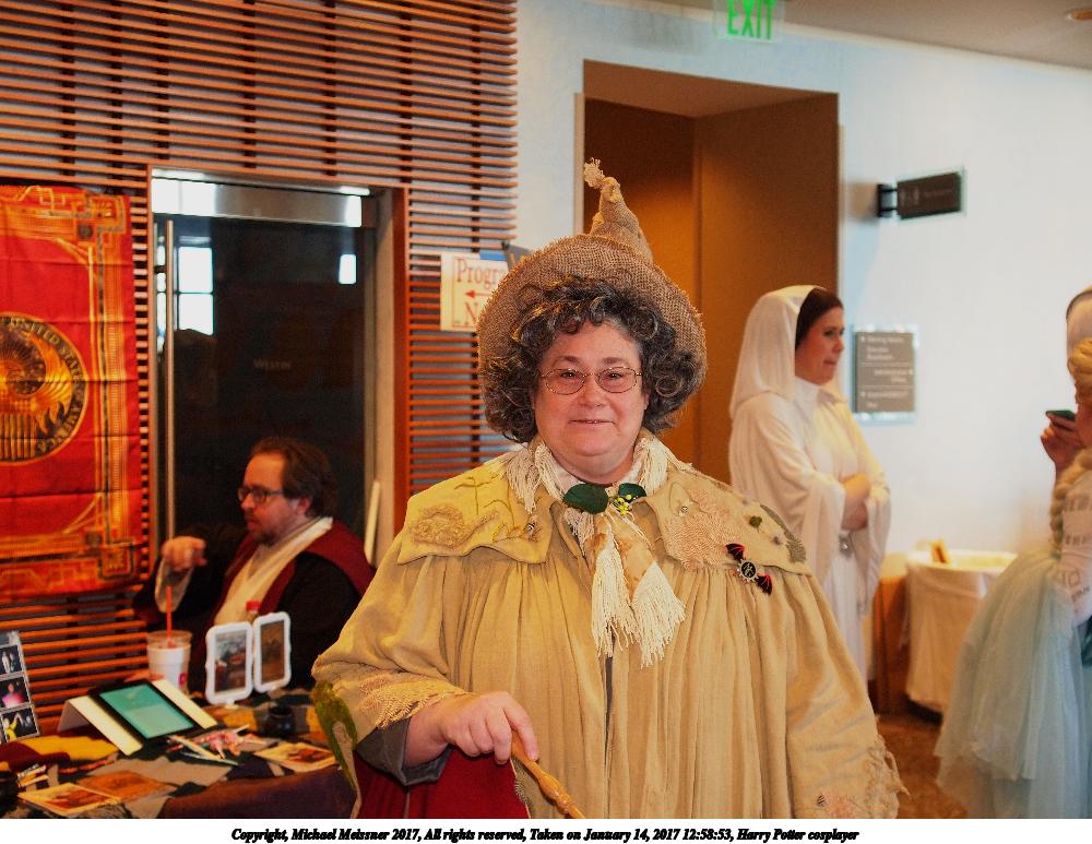 Picture #185: Harry Potter cosplayer Small: 1000x773, 142,855 bytes (140K), (html file) Large: 4000x3000, 7,041,761 bytes (6.7M), (html file) Copyright, Michael Meissner 2017, All rights reserved Olympus E-5 camera with Olympus 14-54mm f/2.8-3.5 lens f/3.0, ISO 640, flash, 1/60 sec, 23.0mm, auto mode, vivid color, HQ, matrix metering, IS1 (All Direction Shake IS), noise filter low 35mm equivalent focal length 46.0mm Programs used: crop, raw therapee Taken by Michael Meissner on January 14, 2017 12:58:53 Last modified on April 27, 2018 at 22:42 |