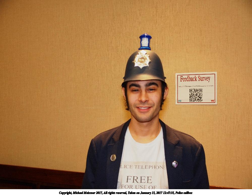 Picture #175: Police callbox Small: 1000x773, 111,228 bytes (109K), (html file) Large: 4000x3000, 6,659,475 bytes (6.4M), (html file) Copyright, Michael Meissner 2017, All rights reserved Olympus E-5 camera with Olympus 14-54mm f/2.8-3.5 lens f/3.0, ISO 640, flash, 1/60 sec, 23.0mm, auto mode, vivid color, HQ, matrix metering, IS1 (All Direction Shake IS), noise filter low 35mm equivalent focal length 46.0mm Programs used: crop, raw therapee Taken by Michael Meissner on January 15, 2017 12:47:35 Last modified on April 27, 2018 at 22:43 |