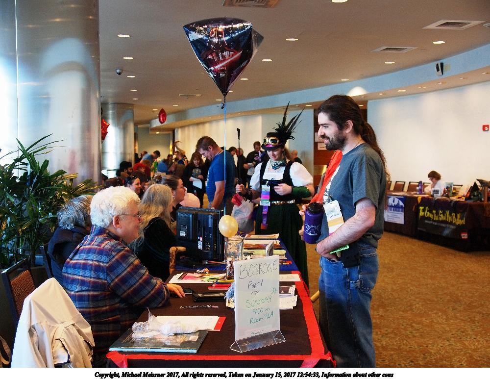 Picture #170: Information about other cons Small: 1000x773, 163,871 bytes (161K), (html file) Large: 4000x3000, 7,471,948 bytes (7.1M), (html file) Copyright, Michael Meissner 2017, All rights reserved Olympus E-5 camera with Olympus 14-54mm f/2.8-3.5 lens f/3.0, ISO 800, 1/60 sec, 23.0mm, auto mode, vivid color, HQ, matrix metering, IS1 (All Direction Shake IS), noise filter low 35mm equivalent focal length 46.0mm Programs used: crop, raw therapee Taken by Michael Meissner on January 15, 2017 12:54:33 Last modified on April 27, 2018 at 22:43 |