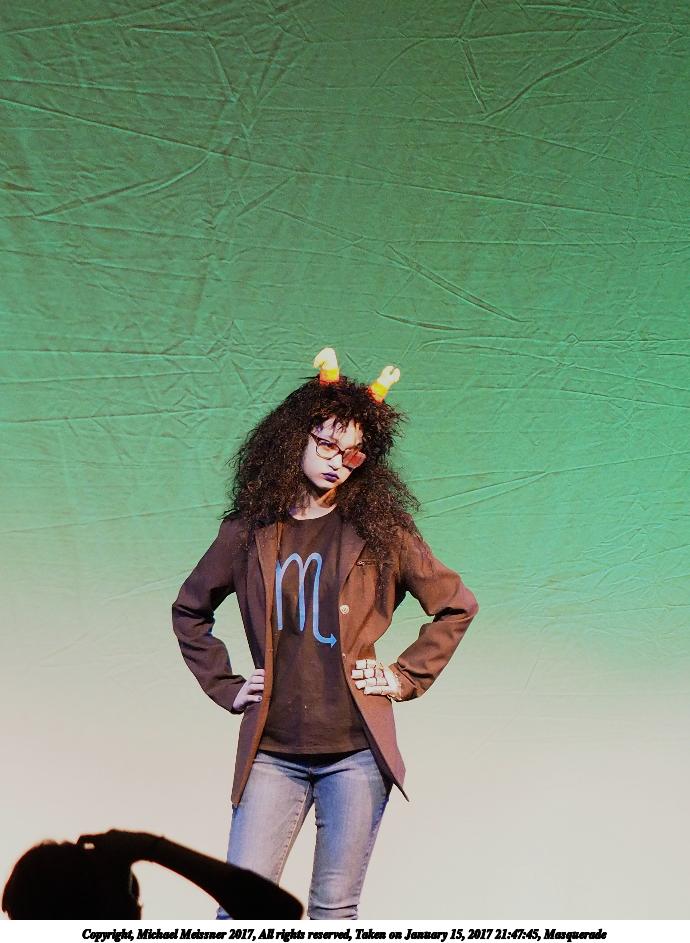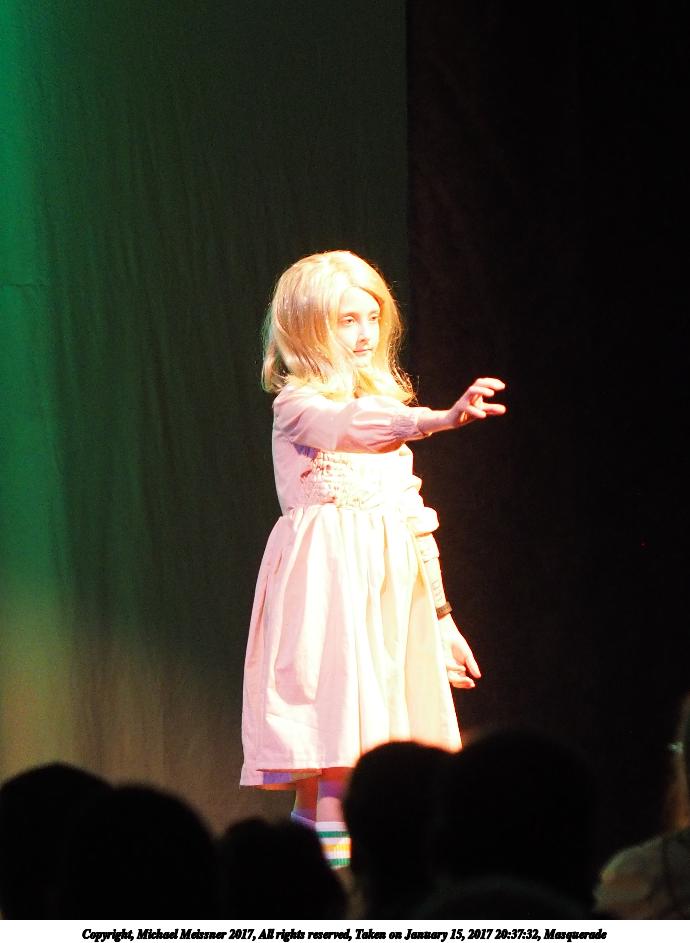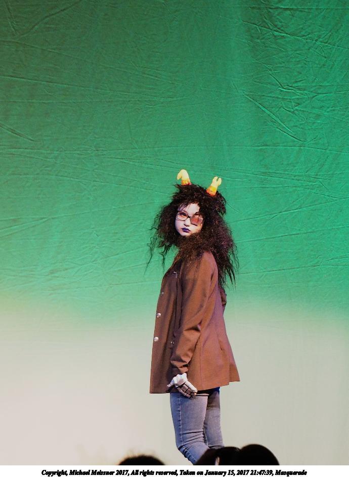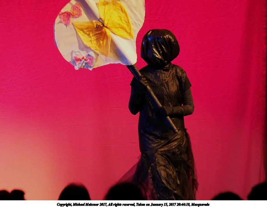Picture #88: Masquerade #65 Small: 690x943, 98,390 bytes (97K), (html file) Large: 3450x4600, 6,710,677 bytes (6.4M), (html file) Copyright, Michael Meissner 2017, All rights reserved Olympus E-M1-I camera with Olympus 50-200mm lens f/2.8, ISO 4000, 1/160 sec, 69.0mm, auto mode, vivid color, SHQ, spot metering, bias 1.0, digital zoom x2, IS Auto, noise filter low, anti-shock 35mm equivalent focal length 276.0mm, digital zoom x2 Programs used: crop Taken by Michael Meissner on January 15, 2017 21:32:18 Last modified on April 27, 2018 at 22:49 |