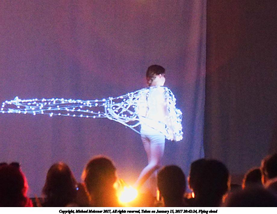 Picture #158: Flying cloud Small: 920x713, 107,786 bytes (106K), (html file) Large: 4600x3450, 9,283,323 bytes (8.9M), (html file) Copyright, Michael Meissner 2017, All rights reserved Olympus E-M1-I camera with Olympus 50-200mm lens f/2.8, ISO 6400, 1/50 sec, 72.0mm, auto mode, vivid color, SHQ, center weight metering, bias -0.7, digital zoom x2, IS Auto, noise filter low, anti-shock 35mm equivalent focal length 288.0mm, digital zoom x2 Programs used: crop, raw therapee Taken by Michael Meissner on January 15, 2017 20:42:24 Last modified on April 27, 2018 at 22:45 |