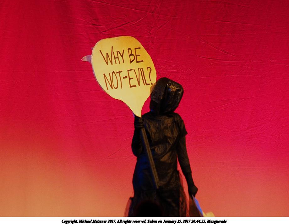 Picture #91: Masquerade #62 Small: 690x943, 80,961 bytes (80K), (html file) Large: 3450x4600, 6,113,609 bytes (5.8M), (html file) Copyright, Michael Meissner 2017, All rights reserved Olympus E-M1-I camera with Olympus 50-200mm lens f/2.8, ISO 6400, 1/160 sec, 69.0mm, auto mode, vivid color, SHQ, spot metering, bias 1.0, digital zoom x2, IS Auto, noise filter low, anti-shock 35mm equivalent focal length 276.0mm, digital zoom x2 Programs used: crop Taken by Michael Meissner on January 15, 2017 21:32:05 Last modified on April 27, 2018 at 22:49 |