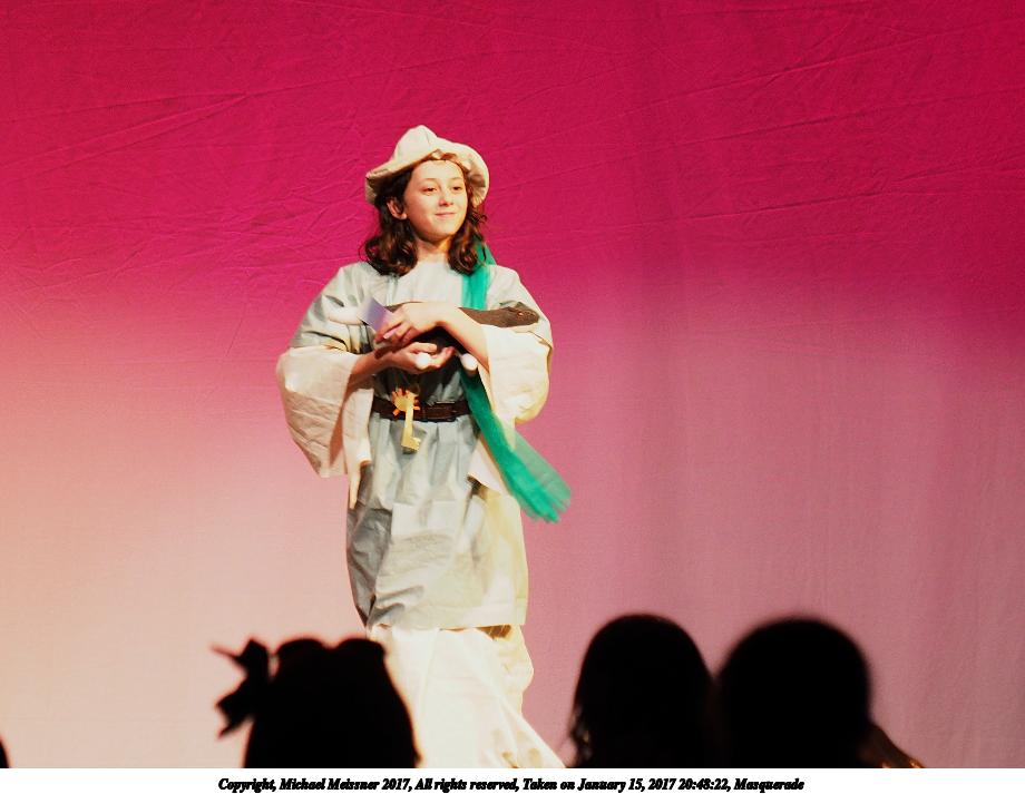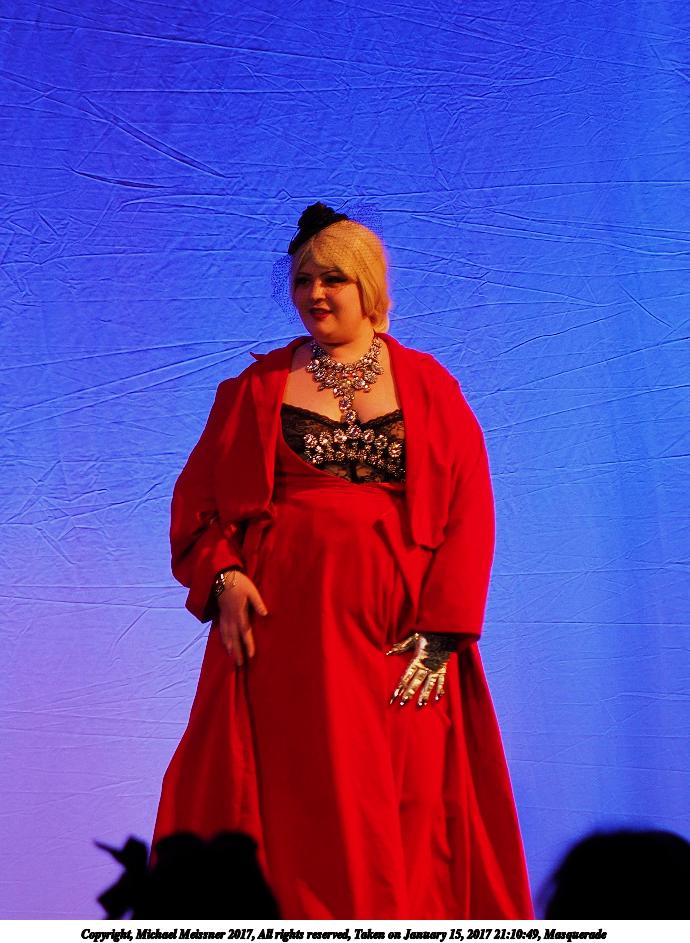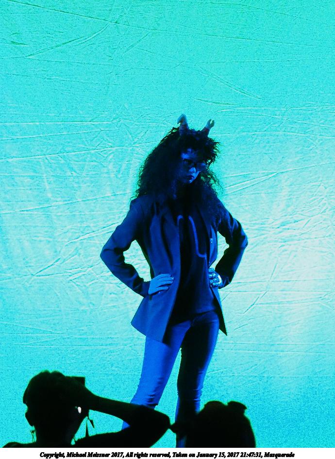 Picture #126: Masquerade #35 Small: 690x943, 112,185 bytes (110K), (html file) Large: 3450x4600, 7,730,051 bytes (7.4M), (html file) Copyright, Michael Meissner 2017, All rights reserved Olympus E-M1-I camera with Olympus 50-200mm lens f/2.8, ISO 800, 1/160 sec, 79.0mm, auto mode, vivid color, SHQ, spot metering, bias -0.3, digital zoom x2, IS Auto, noise filter low, anti-shock 35mm equivalent focal length 316.0mm, digital zoom x2 Programs used: crop Taken by Michael Meissner on January 15, 2017 21:10:58 Last modified on April 27, 2018 at 22:47 |