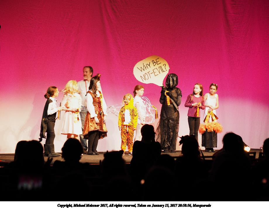 Picture #140: Masquerade #23 Small: 920x713, 85,890 bytes (84K), (html file) Large: 4600x3450, 6,991,757 bytes (6.7M), (html file) Copyright, Michael Meissner 2017, All rights reserved Olympus E-M1-I camera with Olympus 50-200mm lens f/2.8, ISO 400, 1/100 sec, 54.0mm, auto mode, vivid color, SHQ, spot metering, IS Auto, noise filter low, anti-shock 35mm equivalent focal length 108.0mm Programs used: crop, raw therapee Taken by Michael Meissner on January 15, 2017 21:04:29 Last modified on April 27, 2018 at 22:46 |