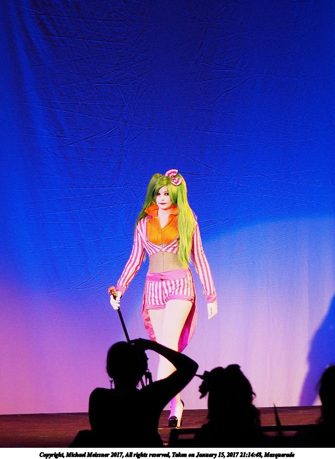 Picture #148: Masquerade #15 Small: 920x713, 101,757 bytes (100K), (html file) Large: 4600x3450, 8,140,487 bytes (7.8M), (html file) Copyright, Michael Meissner 2017, All rights reserved Olympus E-M1-I camera with Olympus 50-200mm lens f/2.8, ISO 640, 1/160 sec, 72.0mm, auto mode, vivid color, SHQ, center weight metering, IS Auto, noise filter low, anti-shock 35mm equivalent focal length 144.0mm Programs used: crop, raw therapee Taken by Michael Meissner on January 15, 2017 20:58:56 Last modified on April 27, 2018 at 22:45 |