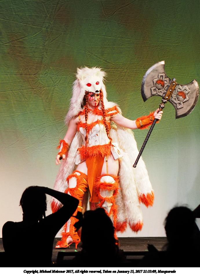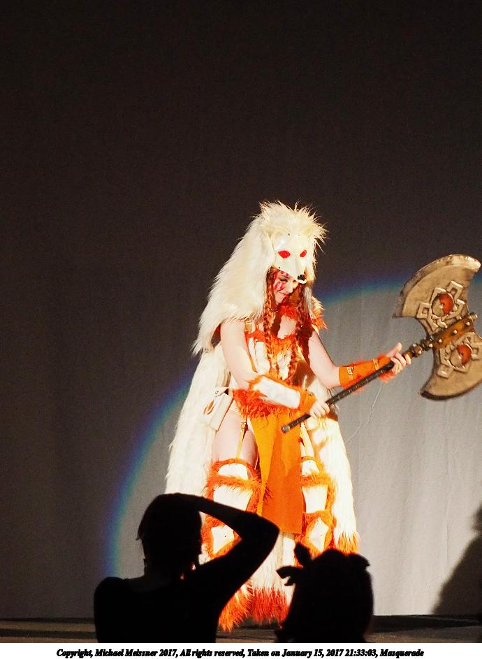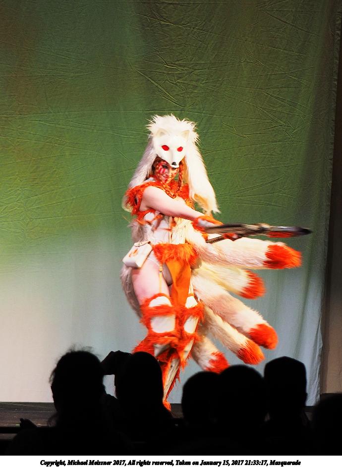 Picture #128: Masquerade #33 Small: 690x943, 116,181 bytes (114K), (html file) Large: 3450x4600, 9,057,642 bytes (8.6M), (html file) Copyright, Michael Meissner 2017, All rights reserved Olympus E-M1-I camera with Olympus 50-200mm lens f/2.9, ISO 320, 1/200 sec, 96.0mm, auto mode, vivid color, SHQ, spot metering, bias -0.3, digital zoom x2, IS Auto, noise filter low, anti-shock 35mm equivalent focal length 385.0mm, digital zoom x2 Programs used: crop Taken by Michael Meissner on January 15, 2017 21:10:49 Last modified on April 27, 2018 at 22:46 |