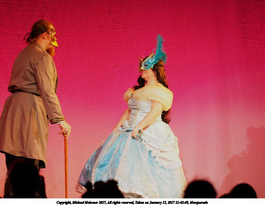 Picture #138: Masquerade #25 Small: 920x713, 104,792 bytes (103K), (html file) Large: 4600x3450, 7,305,015 bytes (7.0M), (html file) Copyright, Michael Meissner 2017, All rights reserved Olympus E-M1-I camera with Olympus 50-200mm lens f/2.8, ISO 1000, 1/125 sec, 62.0mm, auto mode, vivid color, SHQ, spot metering, bias 0.3, digital zoom x2, IS Auto, noise filter low, anti-shock 35mm equivalent focal length 248.0mm, digital zoom x2 Programs used: crop, raw therapee Taken by Michael Meissner on January 15, 2017 21:05:45 Last modified on April 27, 2018 at 22:46 |