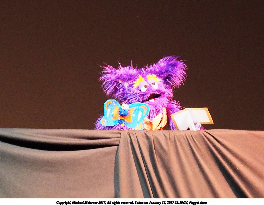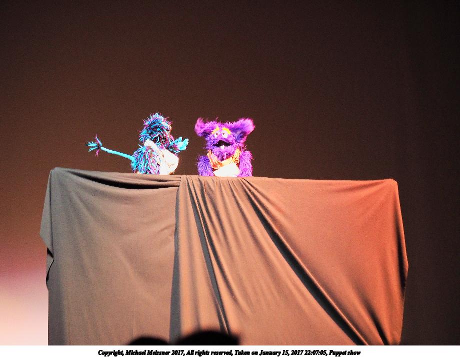 Picture #39: Puppet show #4 Small: 920x713, 95,934 bytes (94K), (html file) Large: 4600x3450, 4,292,309 bytes (4.1M), (html file) Copyright, Michael Meissner 2017, All rights reserved Olympus E-M1-I camera with Olympus 50-200mm lens f/2.8, ISO 800, 1/160 sec, 72.0mm, auto mode, vivid color, SHQ, spot metering, digital zoom x2, IS Auto, noise filter low, anti-shock 35mm equivalent focal length 288.0mm, digital zoom x2 Programs used: crop, raw therapee Taken by Michael Meissner on January 15, 2017 22:16:17 Last modified on April 27, 2018 at 22:51 |