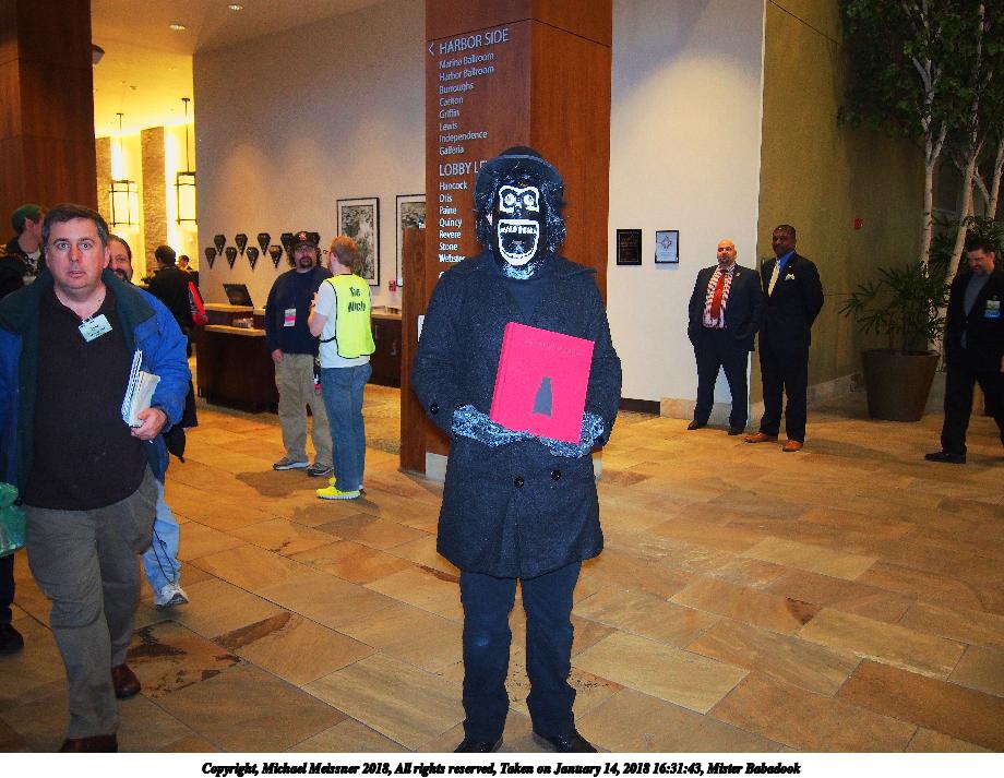 Picture #32: Mister Babadook Small: 920x713, 127,522 bytes (125K), (html file) Large: 4600x3450, 6,432,822 bytes (6.1M), (html file) Copyright, Michael Meissner 2018, All rights reserved Olympus E-PM2 camera with Olympus-m43 14-42mm-IIR f/3.5-5.6 lens f/3.5, ISO 1000, flash (+0.33 flash compensation), 1/60 sec, 14.0mm, auto mode, vivid color, matrix metering, IS1 (All Direction Shake IS), noise filter low 35mm equivalent focal length 28.0mm Taken by Michael Meissner on January 14, 2018 16:31:43 Last modified on April 27, 2018 at 22:43 |