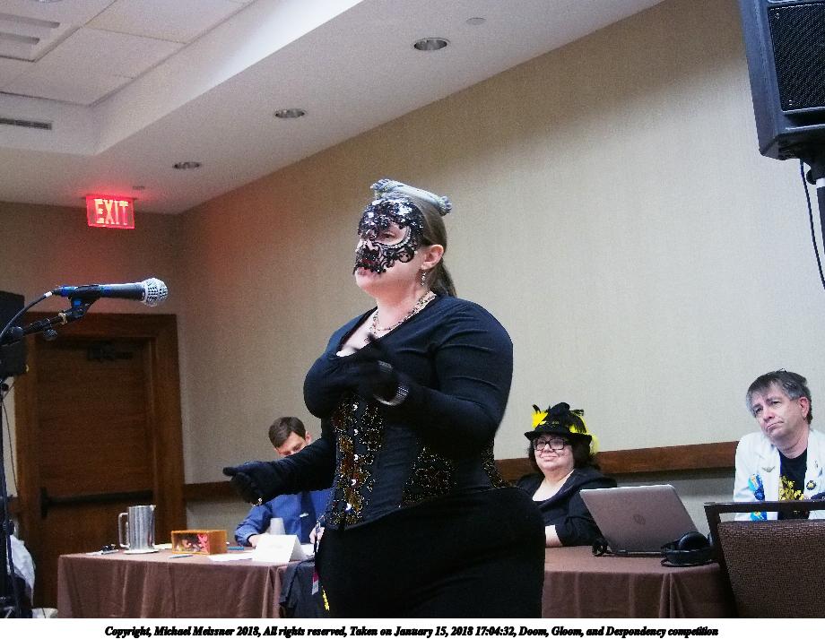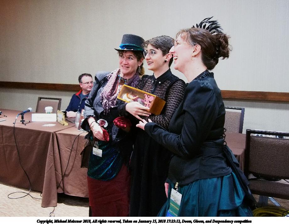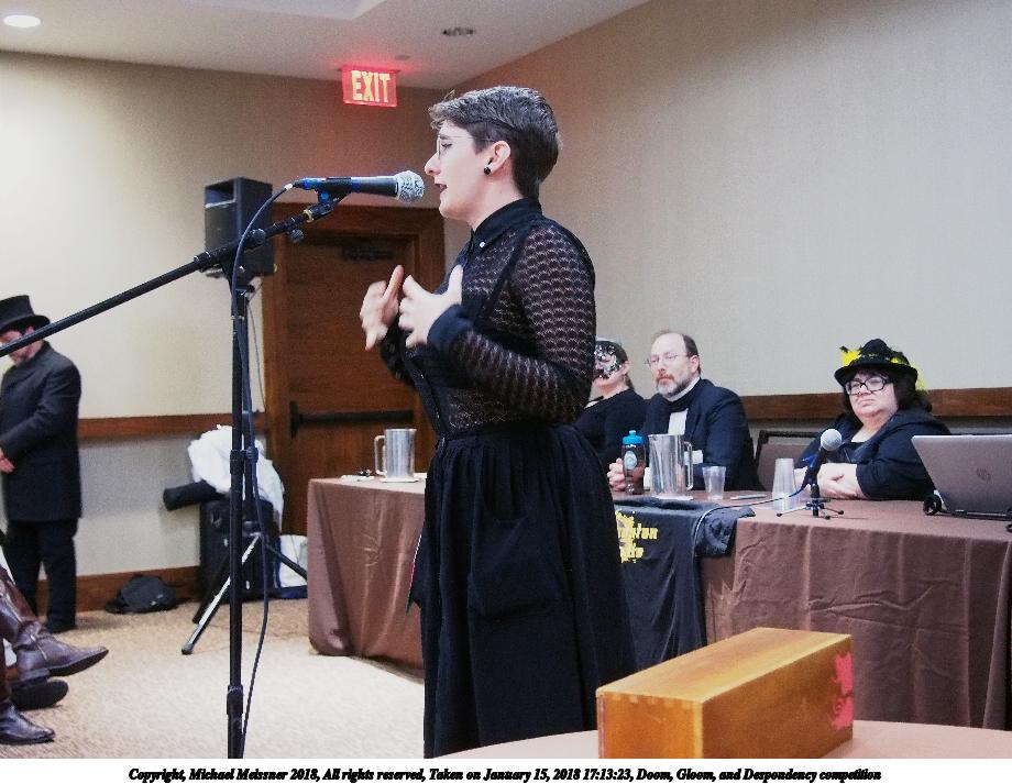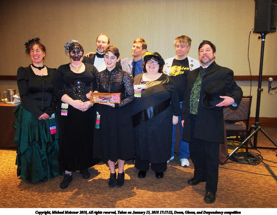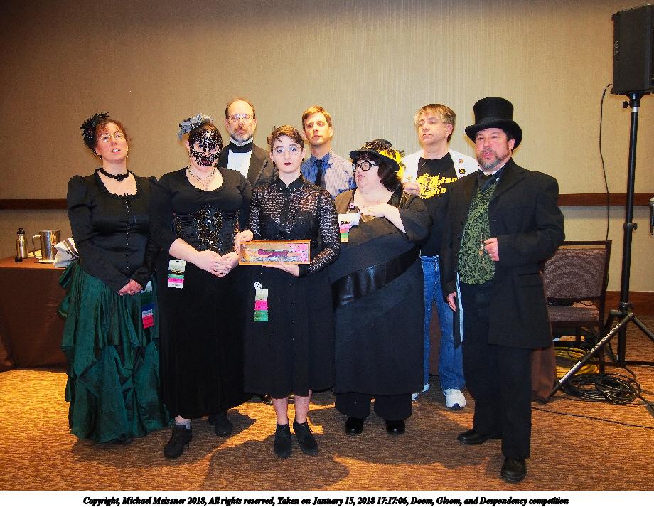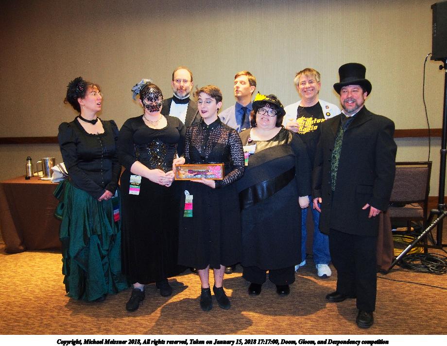 Picture #4: Doom, Gloom, and Despondency competition #10 Small: 920x713, 146,123 bytes (143K), (html file) Large: 4600x3450, 7,062,122 bytes (6.7M), (html file) Copyright, Michael Meissner 2018, All rights reserved Olympus E-PM2 camera with Olympus-m43 14-42mm-IIR f/3.5-5.6 lens f/3.6, ISO 800, flash (+0.33 flash compensation), 1/60 sec, 16.0mm, auto mode, vivid color, matrix metering, IS1 (All Direction Shake IS), noise filter low 35mm equivalent focal length 32.0mm Programs used: crop, raw therapee Taken by Michael Meissner on January 15, 2018 17:17:15 Last modified on April 27, 2018 at 22:52 |