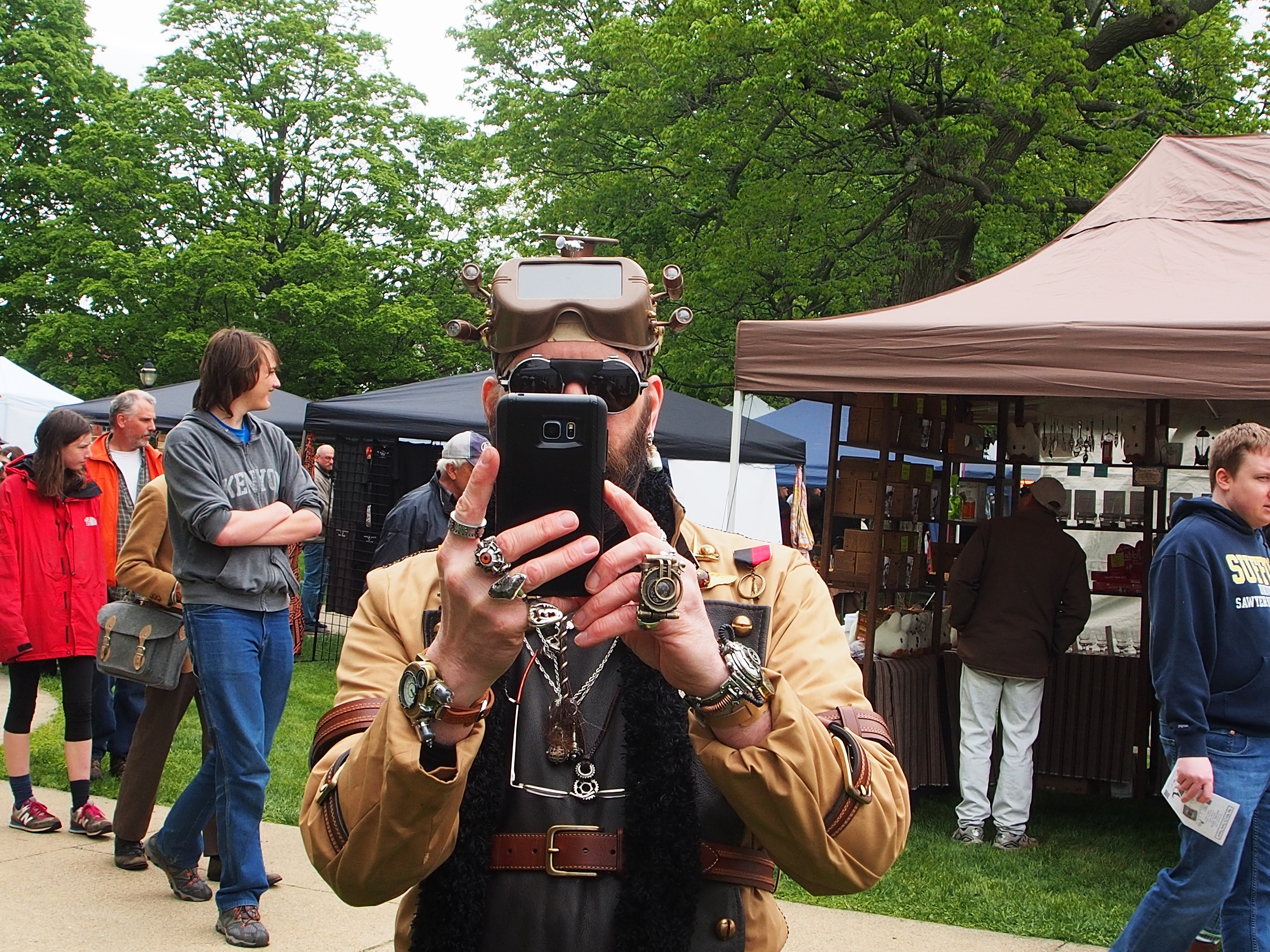 Picture #1: My steampunk camera setup for Watch City, 2017 Thumb: 300x450, 51,725 bytes (51K) Small: 600x946, 159,457 bytes (156K), (html file) Large: 2400x3600, 4,766,845 bytes (4.5M), (html file) Copyright, Michael Meissner 2017, All rights reserved Olympus E-M1-I camera with Olympus-m43 14-150mm-II f/4.0-5.6 lens f/7.1, ISO 200, 1/250 sec, 14.0mm, auto mode, vivid color, SHQ, matrix metering, bias -0.3, IS Auto, noise reduction auto, noise filter low, anti-shock 35mm equivalent focal length 28.0mm Programs used: crop, gimp, raw therapee, rotate right Taken by Michael Meissner on May 13, 2017 12:27:44 Last modified on April 25, 2018 at 10:48 |