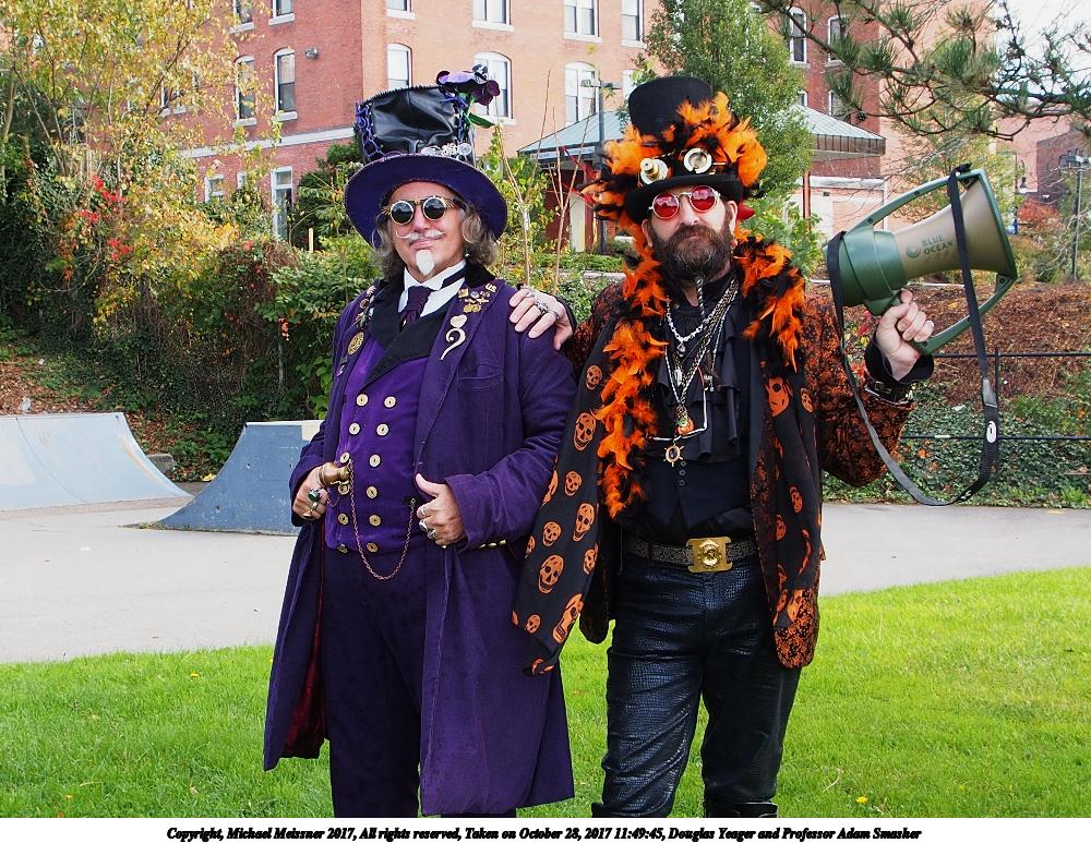 Picture #11: Douglas Yeager and Professor Adam Smasher Thumb: 500x375, 81,055 bytes (80K) Small: 1000x773, 233,398 bytes (228K), (html file) Large: 4000x3000, 8,246,865 bytes (7.9M), (html file) Copyright, Michael Meissner 2017, All rights reserved Olympus E-M5-I camera with Olympus-m43 12-50mm f/3.5-6.3 lens f/4.5, ISO 200, 1/125 sec, 12.0mm, auto mode, vivid color, matrix metering, digital zoom x2, IS1 (All Direction Shake IS), noise filter low 35mm equivalent focal length 48.0mm, digital zoom x2 Programs used: crop, gimp, raw therapee Taken by Michael Meissner on October 28, 2017 11:49:45 Last modified on April 25, 2018 at 10:10 |