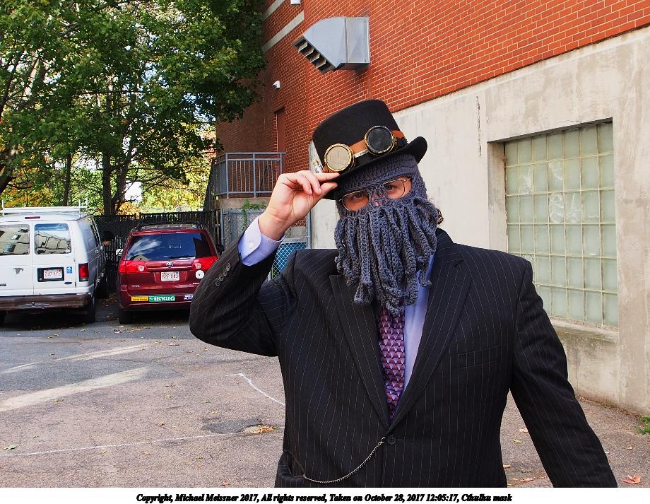 Picture #1: Professor Adam Smasher Thumb: 450x338, 52,255 bytes (52K) Small: 900x698, 133,093 bytes (130K), (html file) Large: 3600x2700, 2,164,040 bytes (2.1M), (html file) Copyright, Michael Meissner 2017, All rights reserved Olympus Stylus-1 camera f/2.8, ISO 100, 1/160 sec, 14.5mm, auto mode, vivid color, SHQ, matrix metering, IS Auto, noise reduction auto, noise filter low 35mm equivalent focal length 70.0mm Programs used: crop, raw therapee Taken by Michael Meissner on October 28, 2017 16:23:05 Last modified on April 25, 2018 at 10:12 |