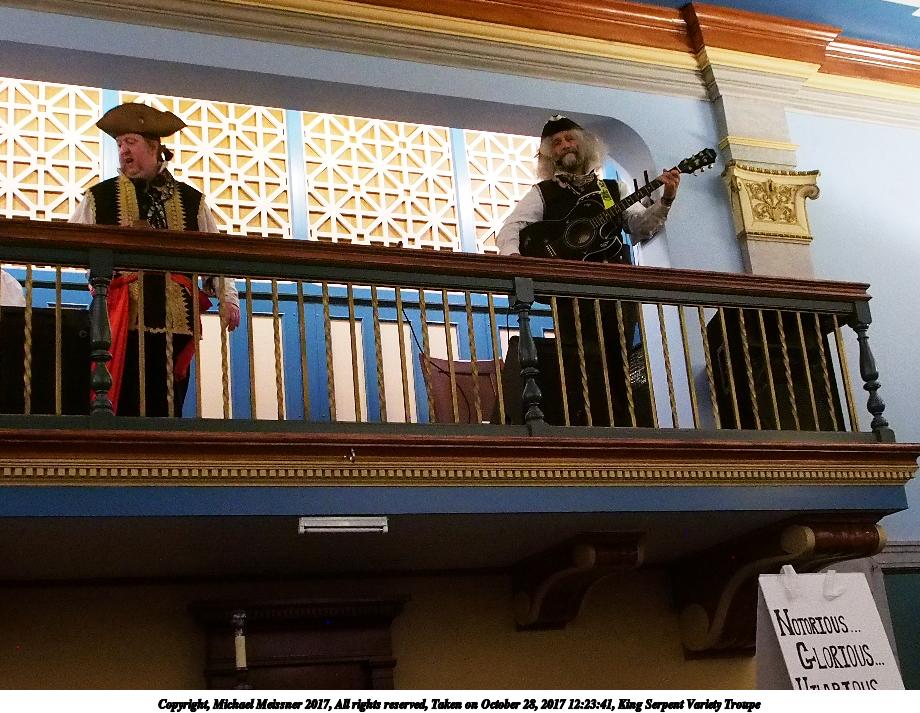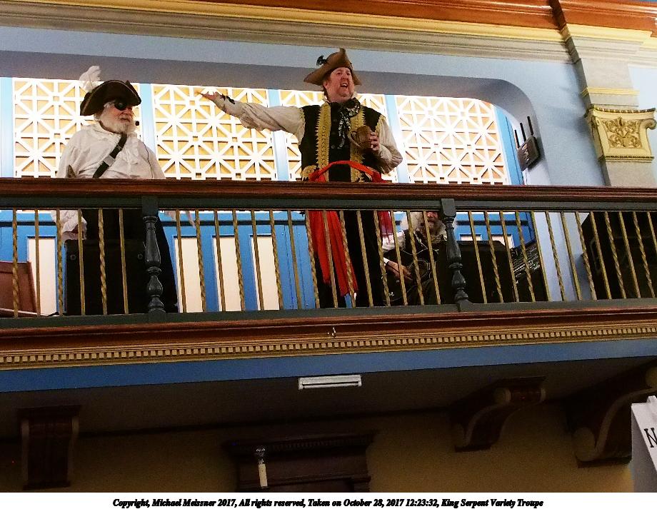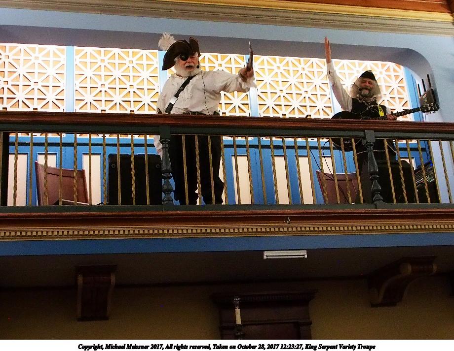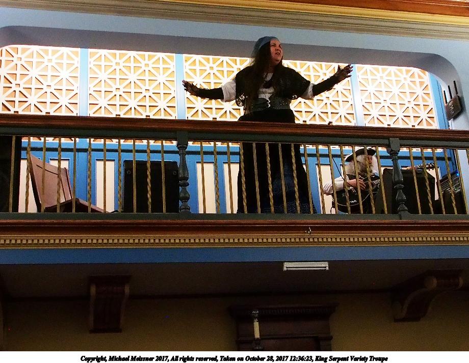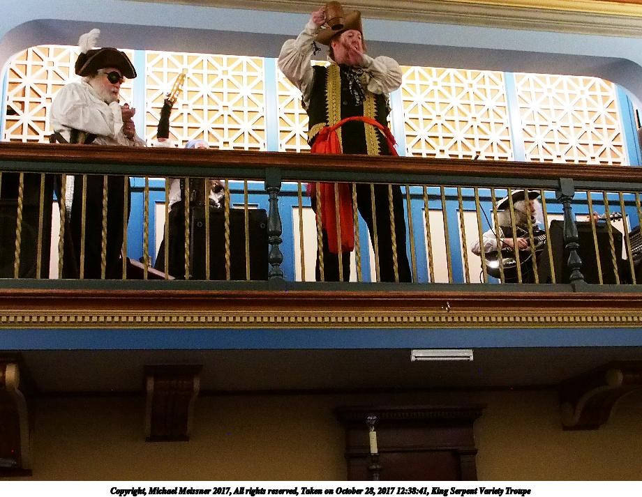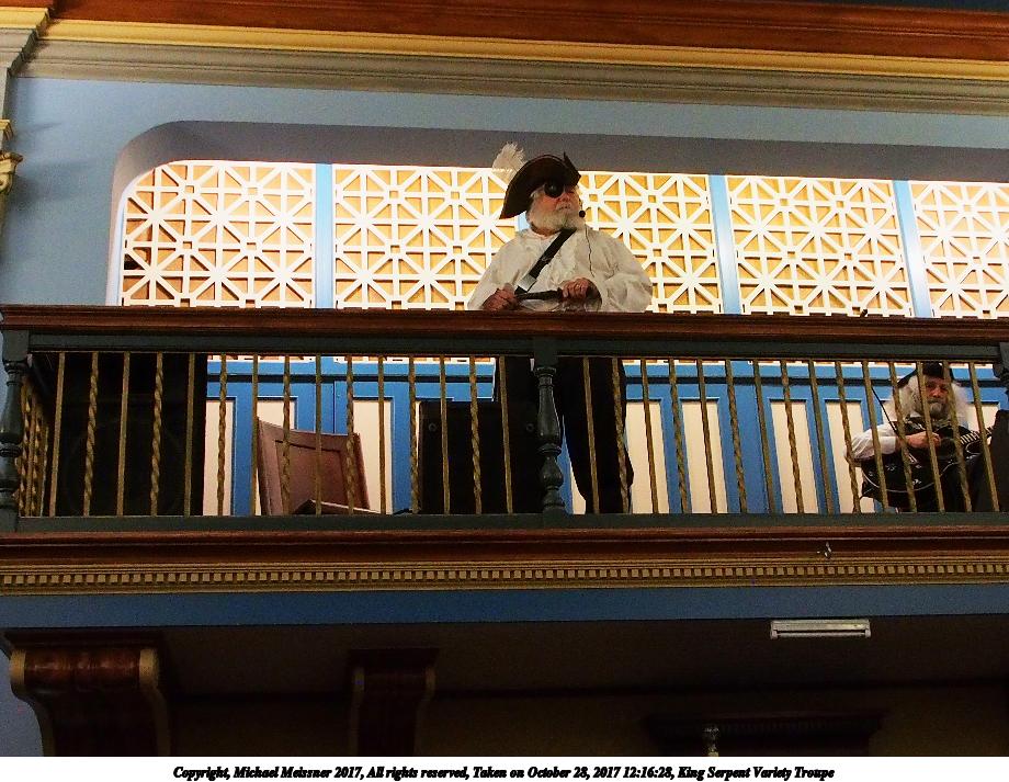 Picture #4: King Serpent Variety Troupe #4 Thumb: 460x345, 51,576 bytes (51K) Small: 920x713, 144,035 bytes (141K), (html file) Large: 4600x3450, 3,338,558 bytes (3.2M), (html file) Copyright, Michael Meissner 2017, All rights reserved Olympus E-M5-I camera with Olympus-m43 12-50mm f/3.5-6.3 lens f/3.5, ISO 3200, 1/60 sec, 12.0mm, auto mode, vivid color, matrix metering, digital zoom x2, IS1 (All Direction Shake IS), noise filter low 35mm equivalent focal length 48.0mm, digital zoom x2 Programs used: crop, raw therapee Taken by Michael Meissner on October 28, 2017 12:23:41 Last modified on April 25, 2018 at 10:12 |