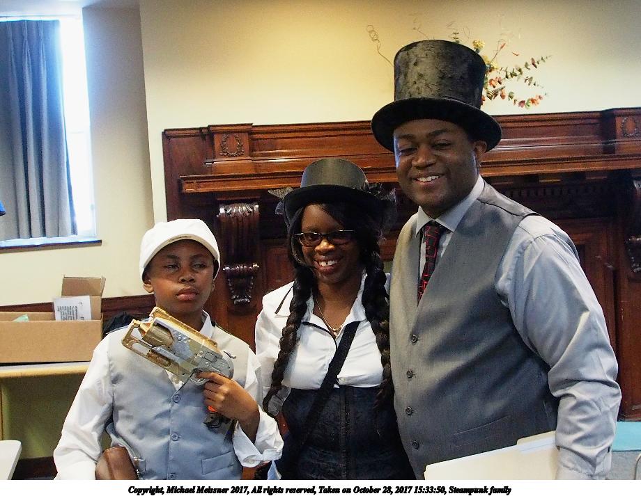 Picture #40: Steampunk family Thumb: 460x345, 50,659 bytes (50K) Small: 920x713, 123,508 bytes (121K), (html file) Large: 4600x3450, 7,277,688 bytes (6.9M), (html file) Copyright, Michael Meissner 2017, All rights reserved Olympus E-M5-I camera with Olympus-m43 12-50mm f/3.5-6.3 lens f/3.5, ISO 2000, 1/60 sec, 12.0mm, auto mode, vivid color, matrix metering, digital zoom x2, IS1 (All Direction Shake IS), noise filter low 35mm equivalent focal length 48.0mm, digital zoom x2 Programs used: crop, gimp, raw therapee Taken by Michael Meissner on October 28, 2017 15:33:50 Last modified on April 25, 2018 at 10:11 |
