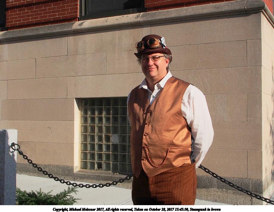 Picture #41: Steampunk in brown Thumb: 460x345, 46,892 bytes (46K) Small: 920x713, 144,550 bytes (142K), (html file) Large: 4600x3450, 8,368,573 bytes (8.0M), (html file) Copyright, Michael Meissner 2017, All rights reserved Olympus E-M5-I camera with Olympus-m43 12-50mm f/3.5-6.3 lens f/8.0, ISO 200, 1/400 sec, 12.0mm, auto mode, vivid color, matrix metering, digital zoom x2, IS1 (All Direction Shake IS), noise filter low 35mm equivalent focal length 48.0mm, digital zoom x2 Programs used: crop, gimp, raw therapee Taken by Michael Meissner on October 28, 2017 15:45:30 Last modified on April 25, 2018 at 10:11 |