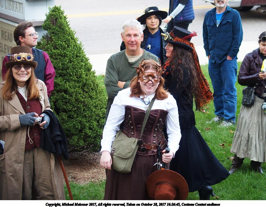 Picture #4: Costume Contest audience Thumb: 450x338, 57,952 bytes (57K) Small: 900x698, 165,558 bytes (162K), (html file) Large: 3600x2700, 2,799,333 bytes (2.7M), (html file) Copyright, Michael Meissner 2017, All rights reserved Olympus Stylus-1 camera f/2.8, ISO 200, 1/200 sec, 26.2mm, auto mode, vivid color, SHQ, matrix metering, IS Auto, noise reduction auto, noise filter low 35mm equivalent focal length 124.0mm Programs used: crop, raw therapee Taken by Michael Meissner on October 28, 2017 16:26:45 Last modified on April 25, 2018 at 10:13 |