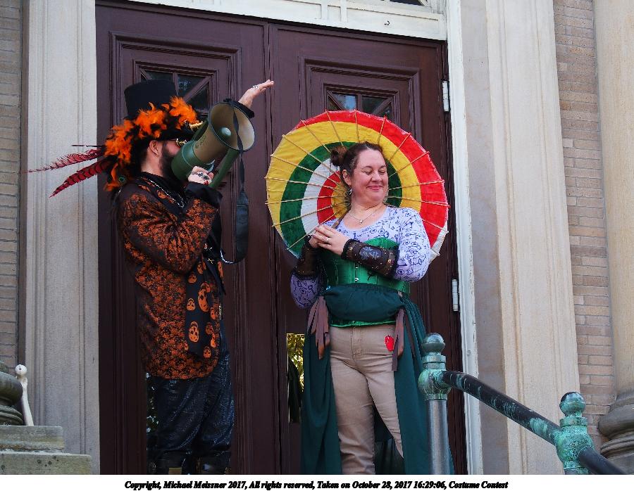 Picture #25: Costume Contest #21 Thumb: 450x338, 52,198 bytes (51K) Small: 900x698, 158,073 bytes (155K), (html file) Large: 3600x2700, 2,598,770 bytes (2.5M), (html file) Copyright, Michael Meissner 2017, All rights reserved Olympus Stylus-1 camera f/3.5, ISO 100, 1/160 sec, 6.0mm, auto mode, vivid color, SHQ, matrix metering, IS Auto, noise reduction auto, noise filter low 35mm equivalent focal length 28.0mm Programs used: crop, raw therapee Taken by Michael Meissner on October 28, 2017 16:32:23 Last modified on April 25, 2018 at 10:14 |