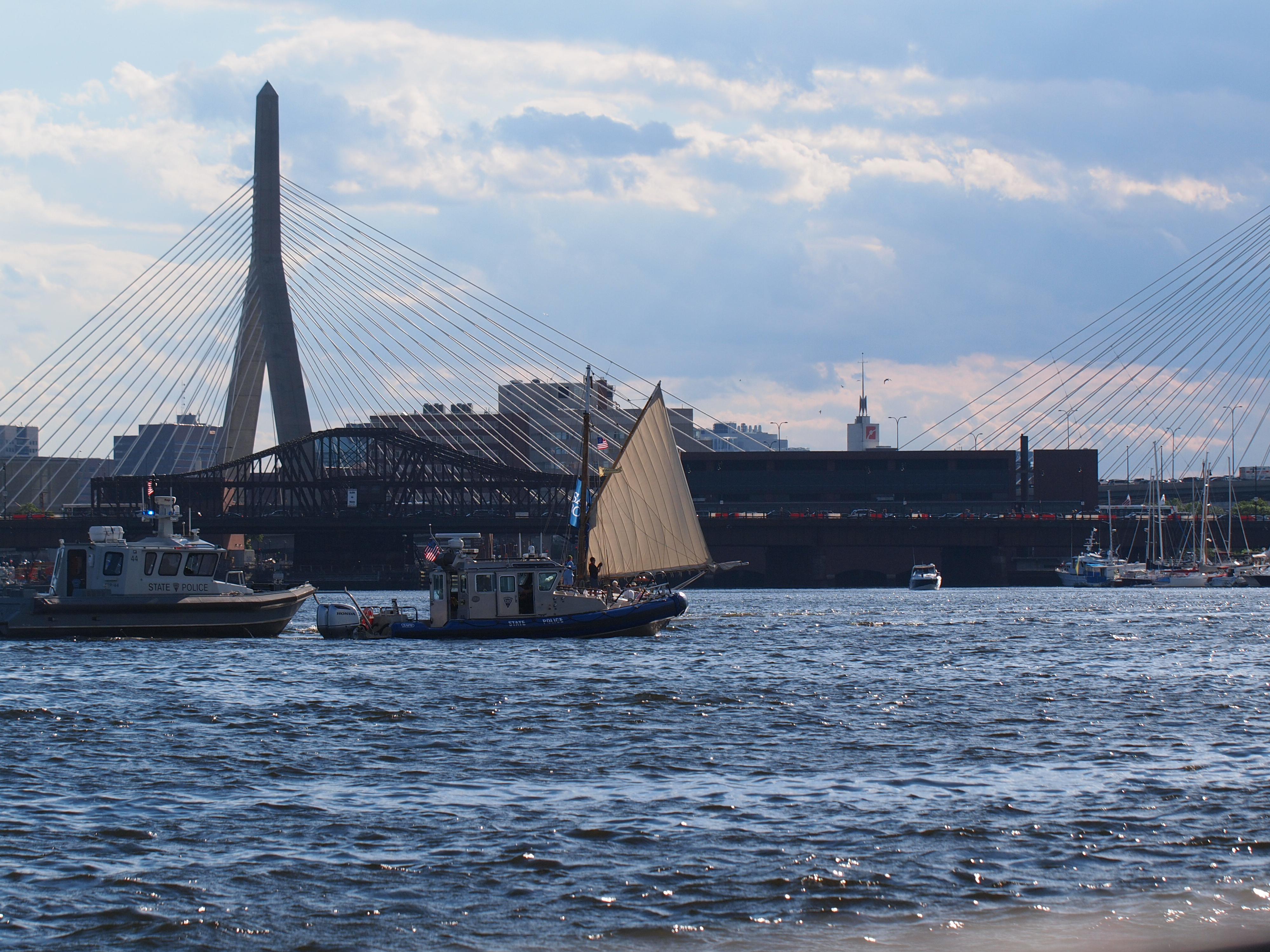 Picture #100: Boats and the Leonard P. Zakim Bunker Hill Memorial Bridge #2 Small: 1000x773, 170,608 bytes (167K), (html file) Large: 4000x3000, 6,633,853 bytes (6.3M), (html file) Copyright, Michael Meissner 2017, All rights reserved Olympus E-5 camera with Olympus 50-200mm lens and Olympus EC-14 (1.4x) f/6.3, ISO 200, 1/640 sec, 184.0mm, auto mode, vivid color, HQ, matrix metering, IS1 (All Direction Shake IS), noise filter low 35mm equivalent focal length 369.0mm, EC-14 Programs used: crop Taken by Michael Meissner on June 20, 2017 17:44:38 Last modified on April 27, 2018 at 11:13 |